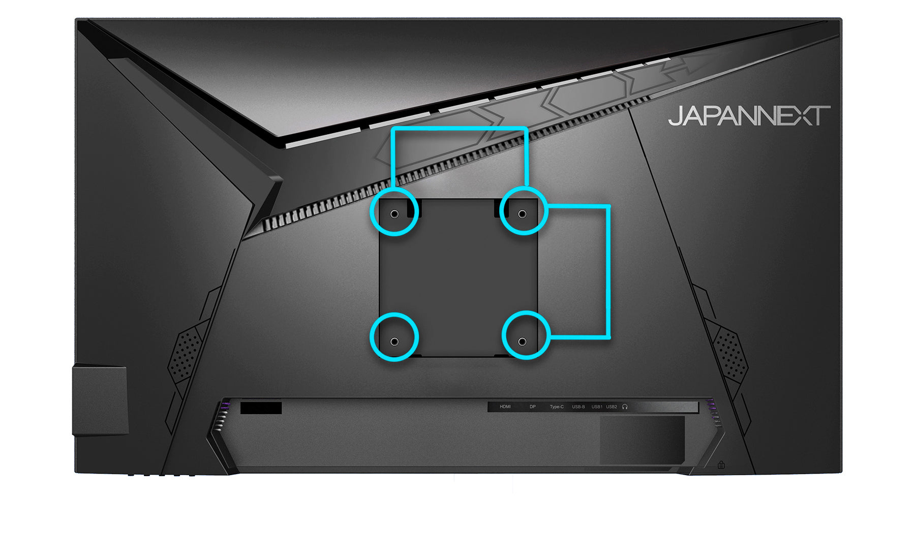 100x100mmのVESAマウントに対応しますので、別売りのモニターアームなどに使用が可能です。