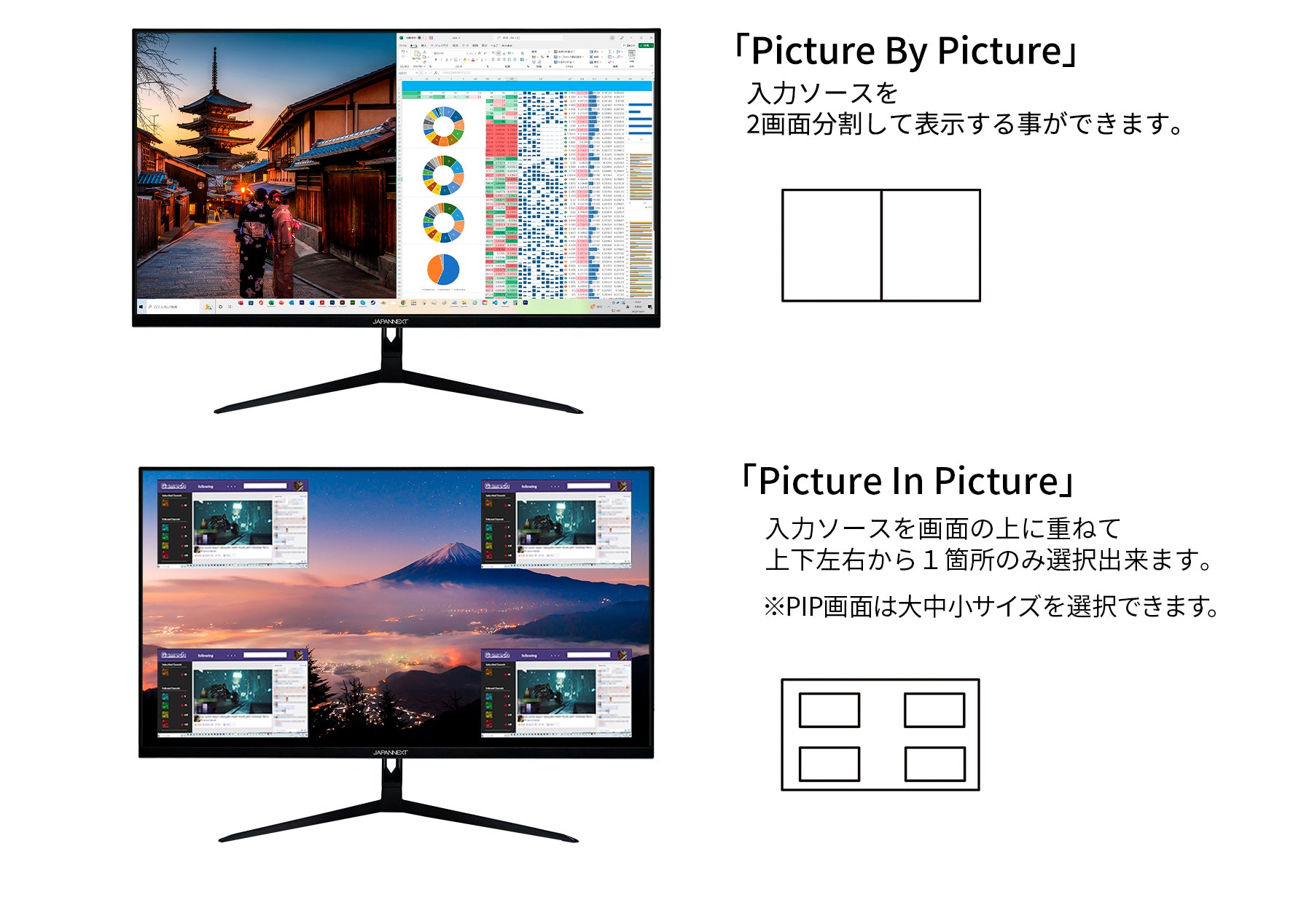さらにPBP(Picture By Picture)に対応、PBPでは2つの入力を左右に同時表示することが可能です。