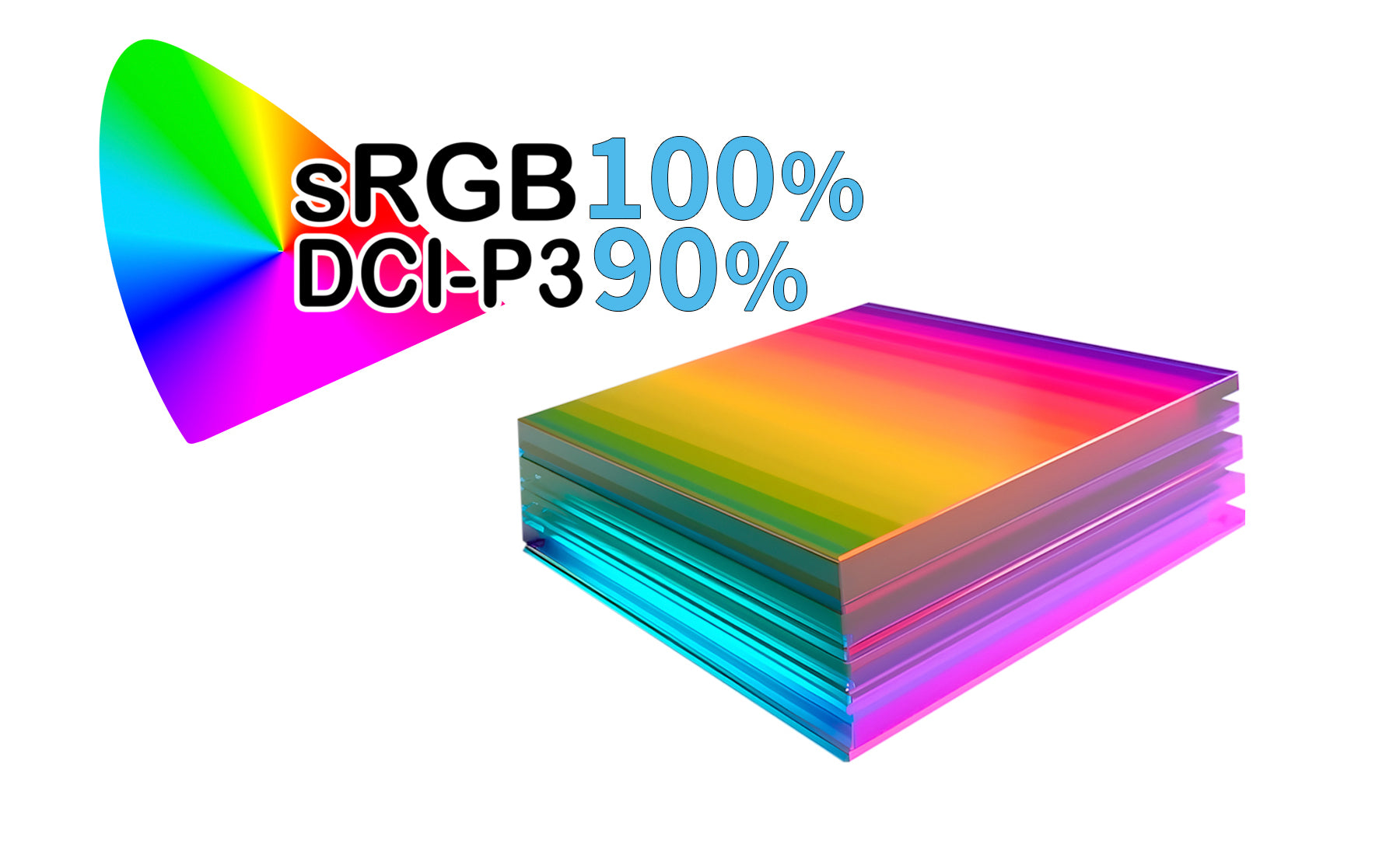 sRGB:100%, DCI-P3:90%、輝度350cd/m2の高性能パネルが画像を鮮やかな色彩でくっきりと表示します。