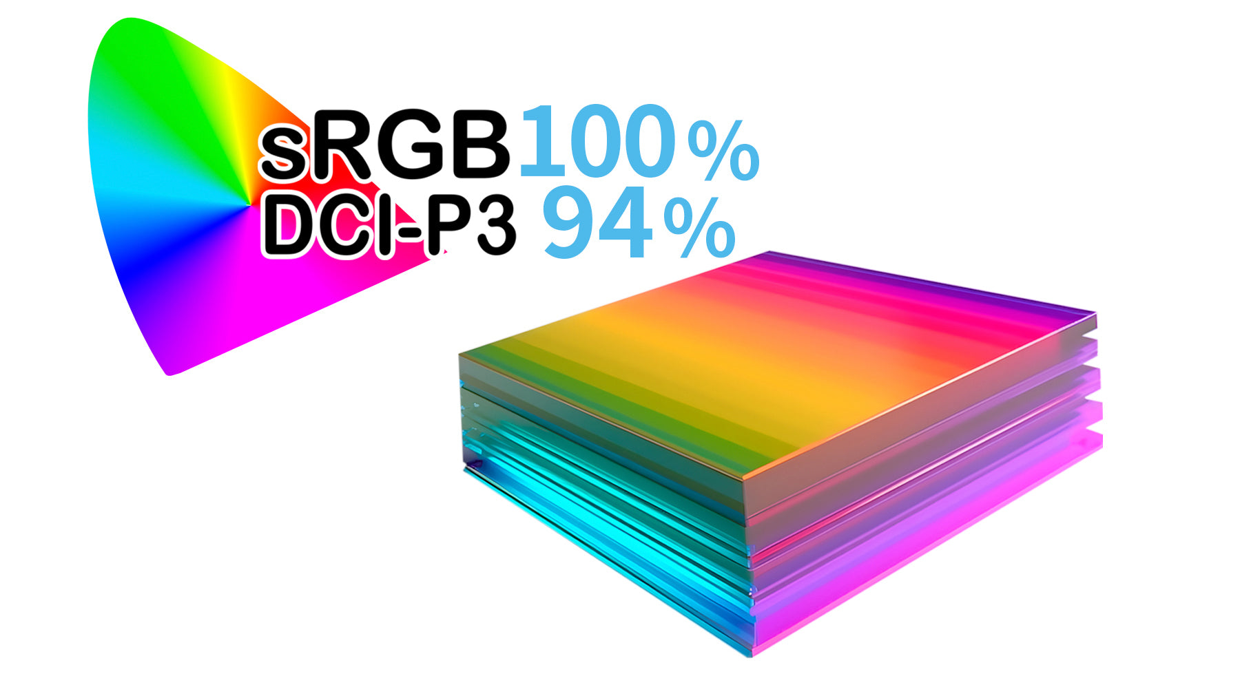 sRGB:100%、DCI-P3:94%、輝度300cd/m2の高性能パネルが画像を鮮やかな色彩でくっきりと表示します