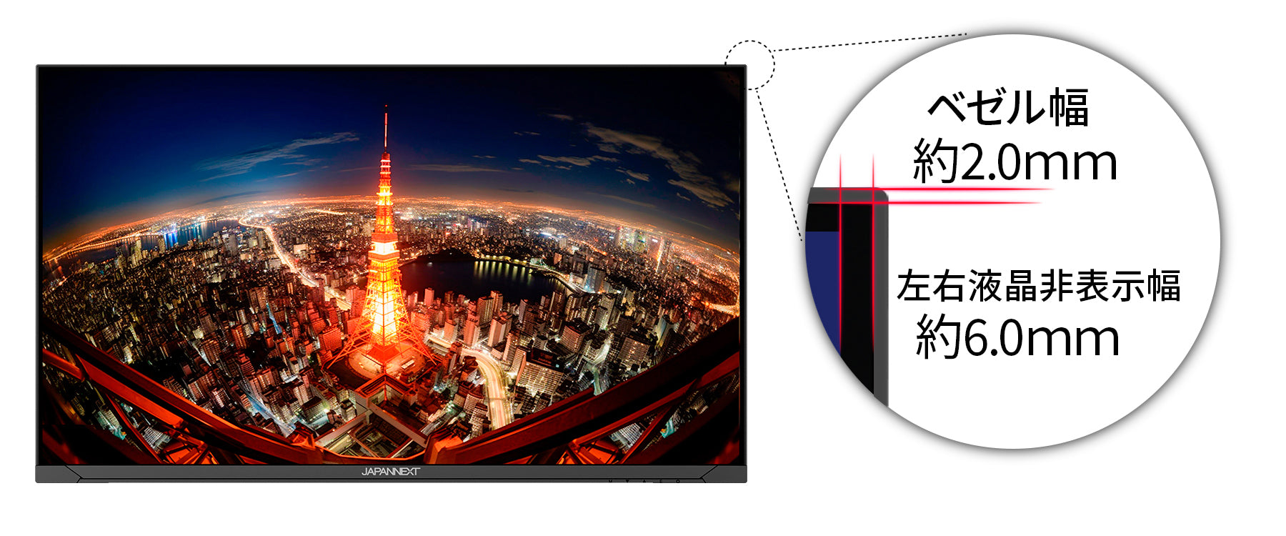 上下左右178°の視野角度を持つIPSパネルは標準的なTNパネルと異なり、 斜めから見ても色やコントラスト変化がおきにくい鮮明な画像を映し出します。