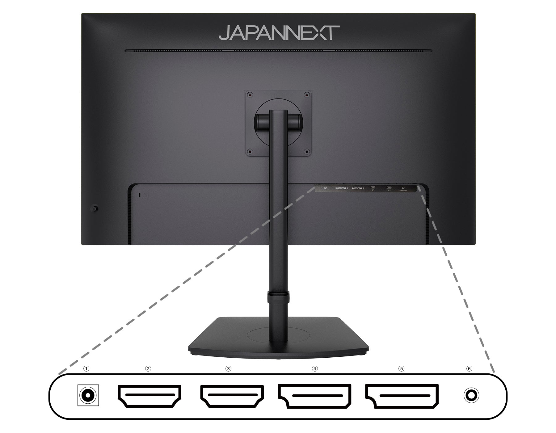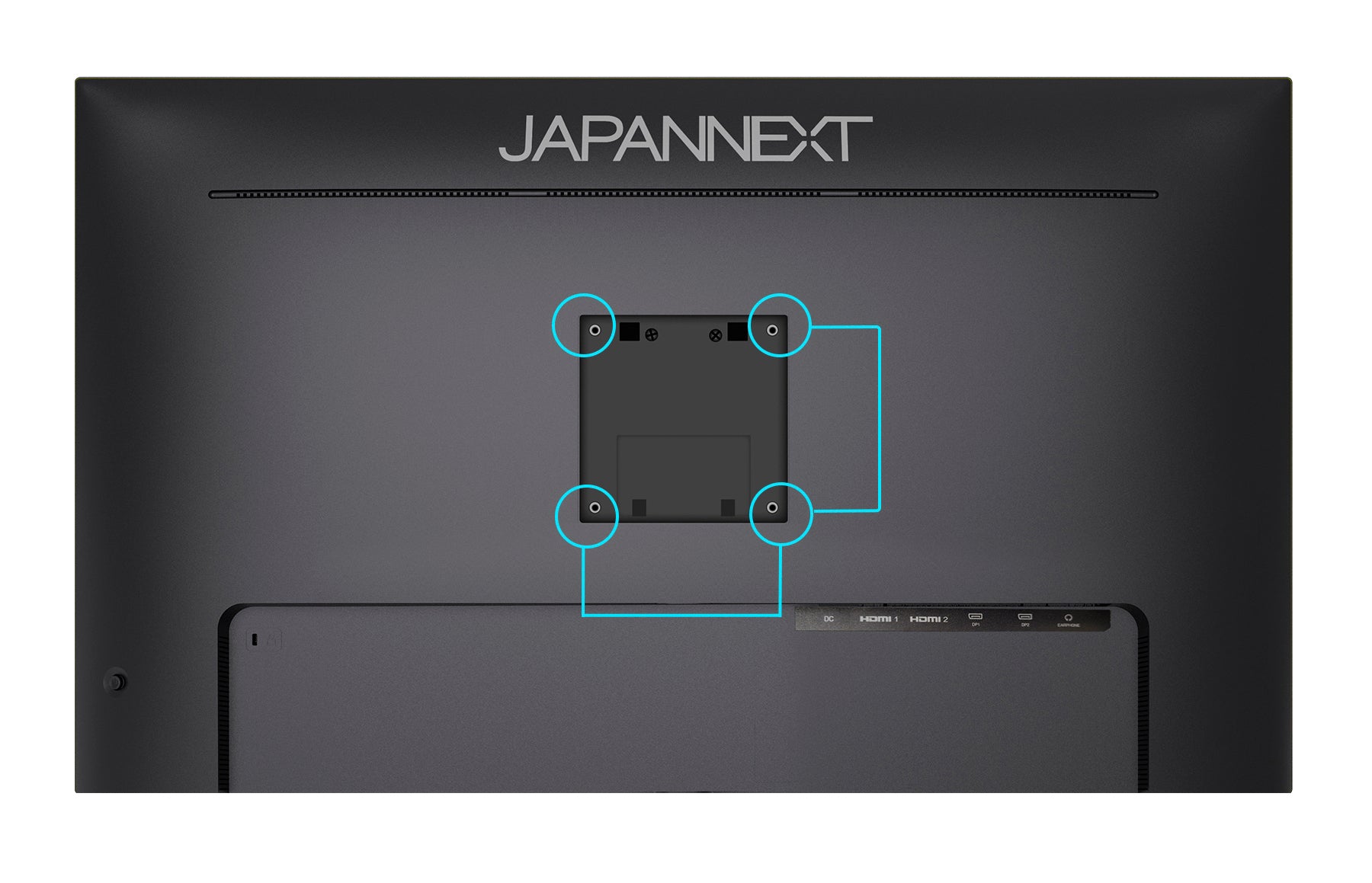 100x100mmのVESAマウントに対応しますので、別売りのモニターアームなどに使用が可能です。
