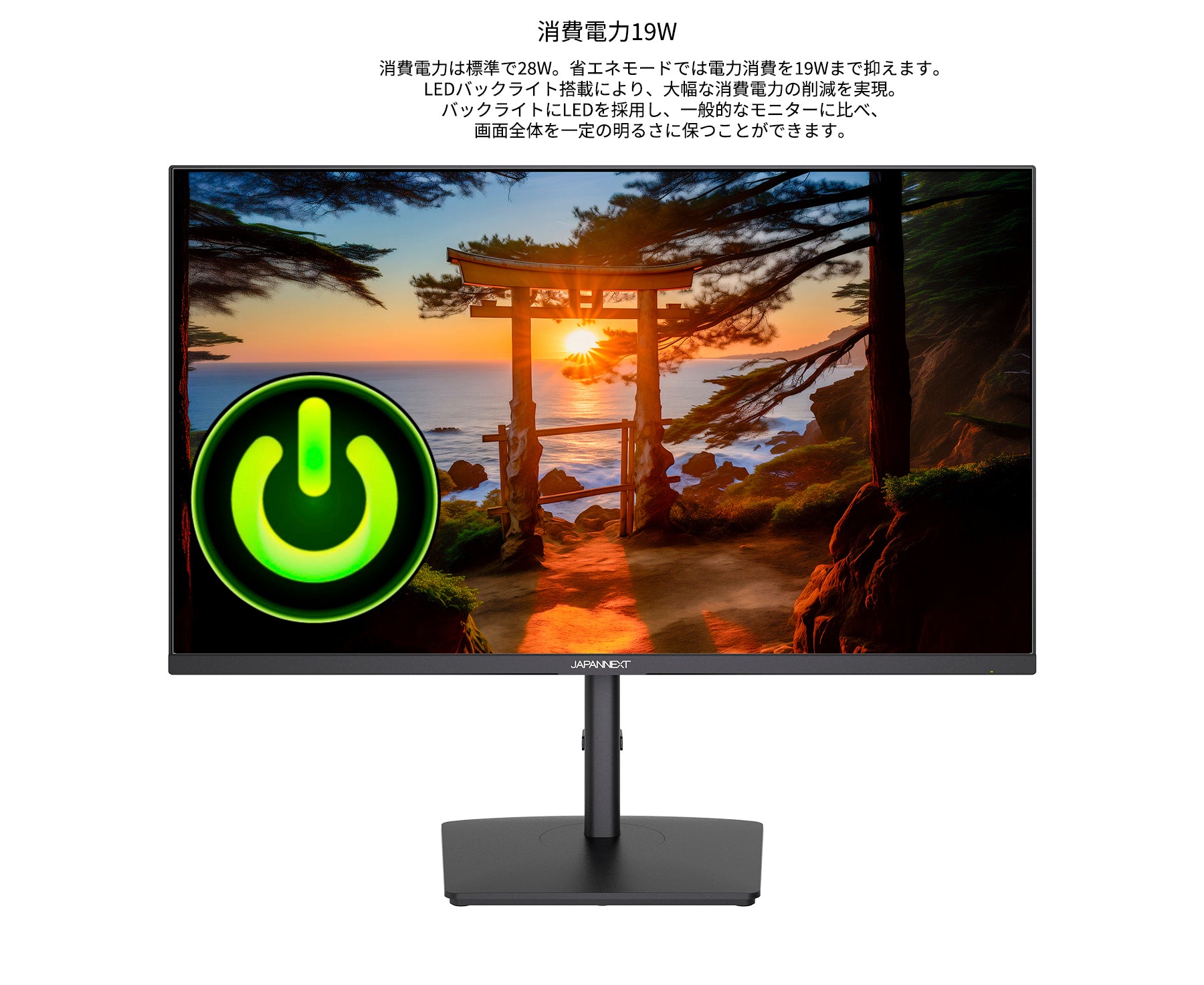 上下左右178°の視野角度を持つIPSパネルは標準的なTNパネルと異なり、 斜めから見ても色やコントラスト変化がおきにくい鮮明な画像を映し出します。