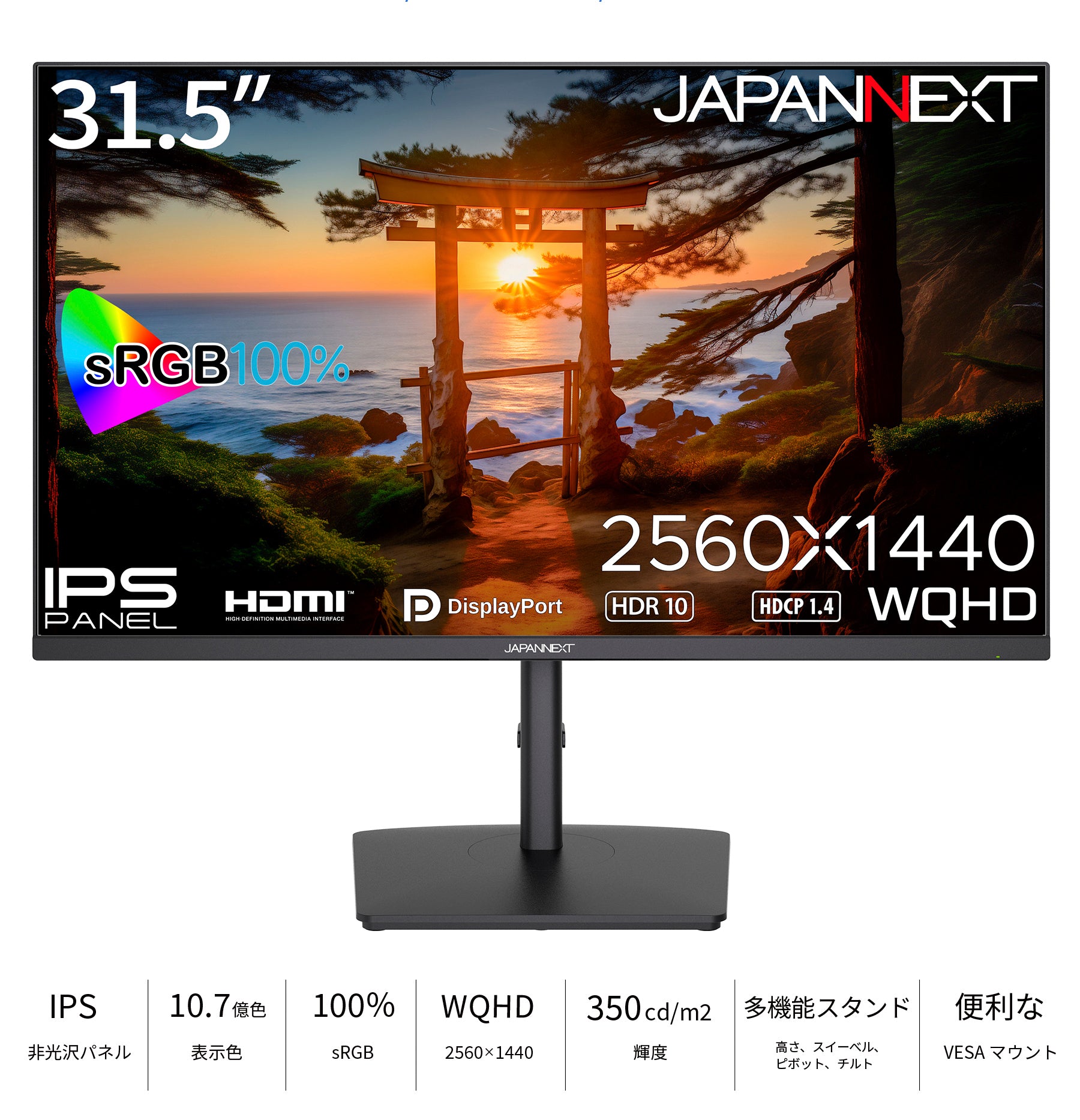 31.5” IPSパネル多機能スタンド搭載WQHD液晶モニター
