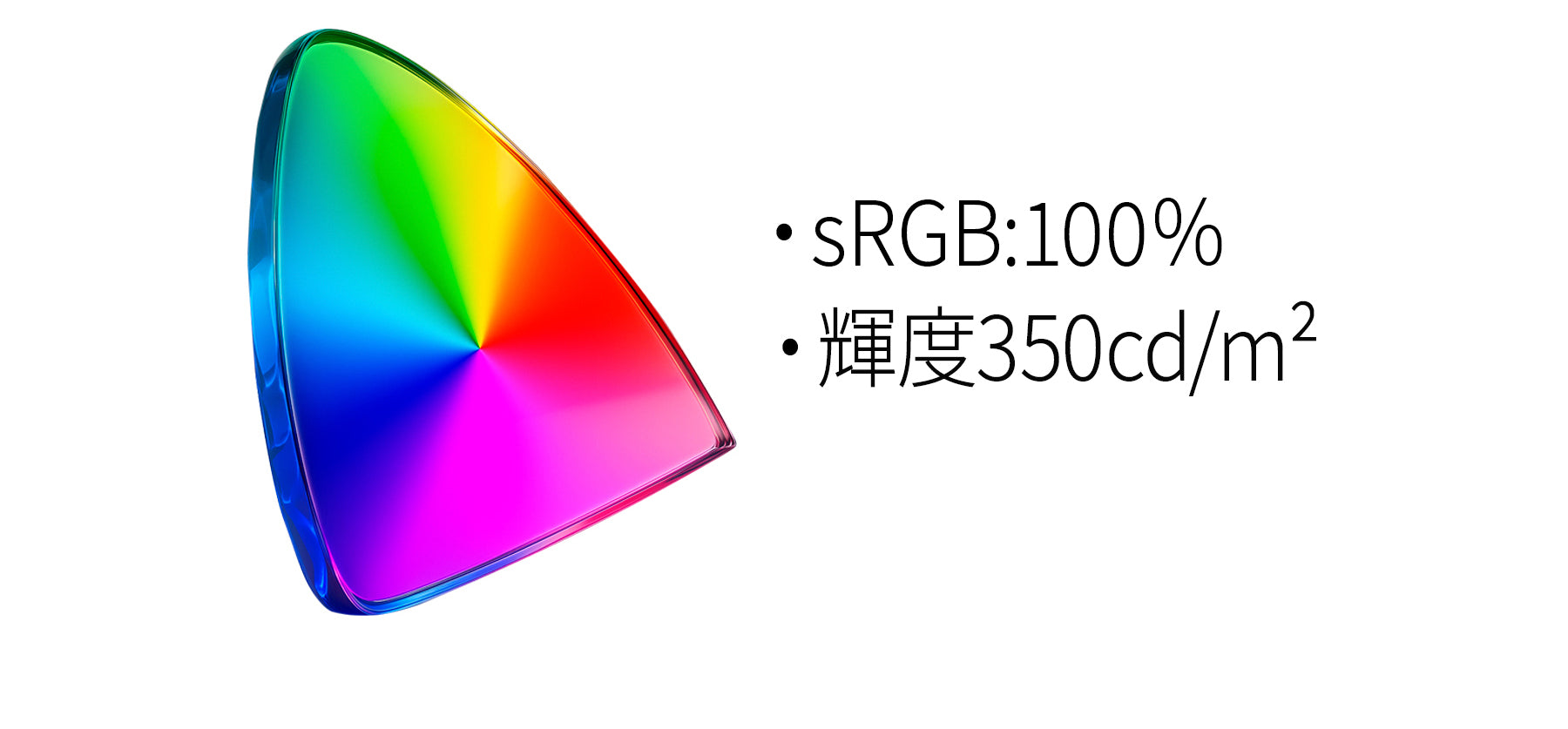 sRGB : 100%、輝度 : 350cd/m²の高性能パネルが、鮮やかで精緻な色彩表現を実現します。