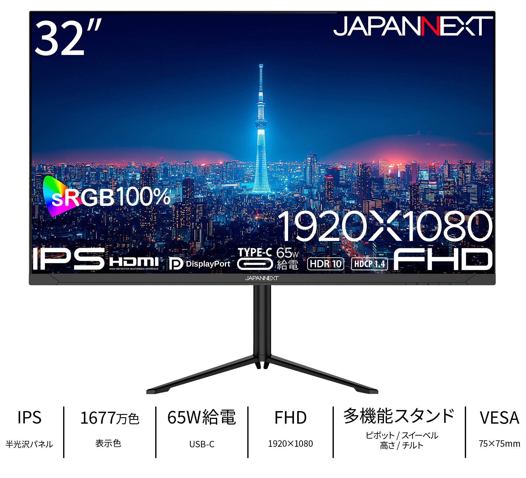 32インチのIPSパネルを採用したフルHD(1920x1080)解像度の液晶モニターです。