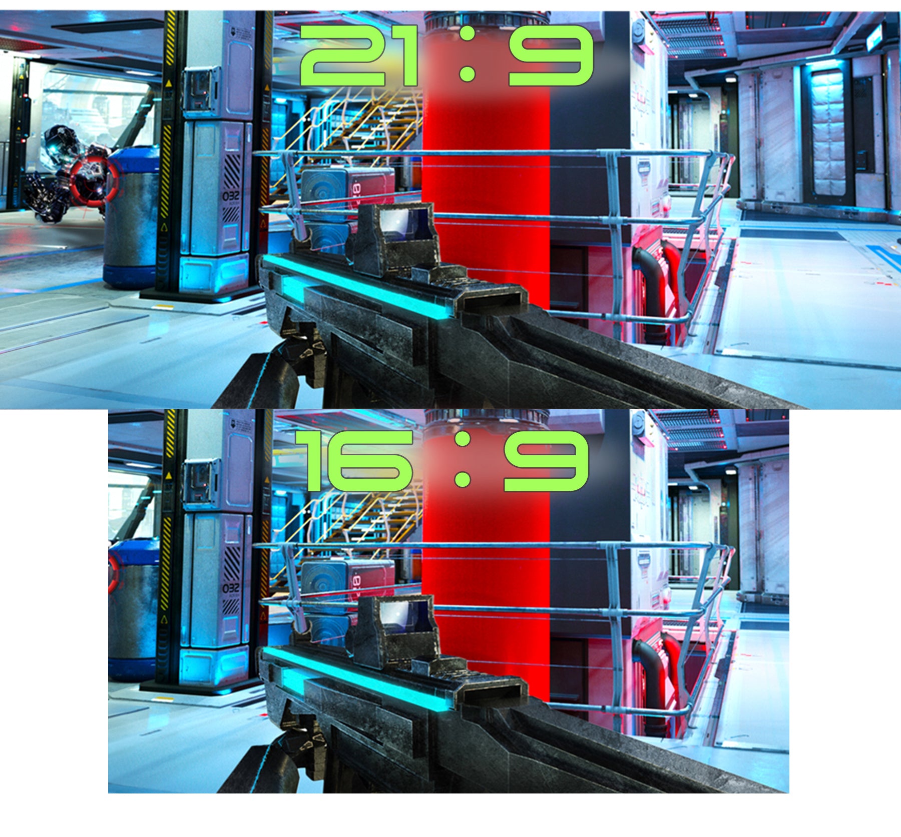 21:9のアスペクト比は、16:9に比べて約30%広い表示領域を実現。