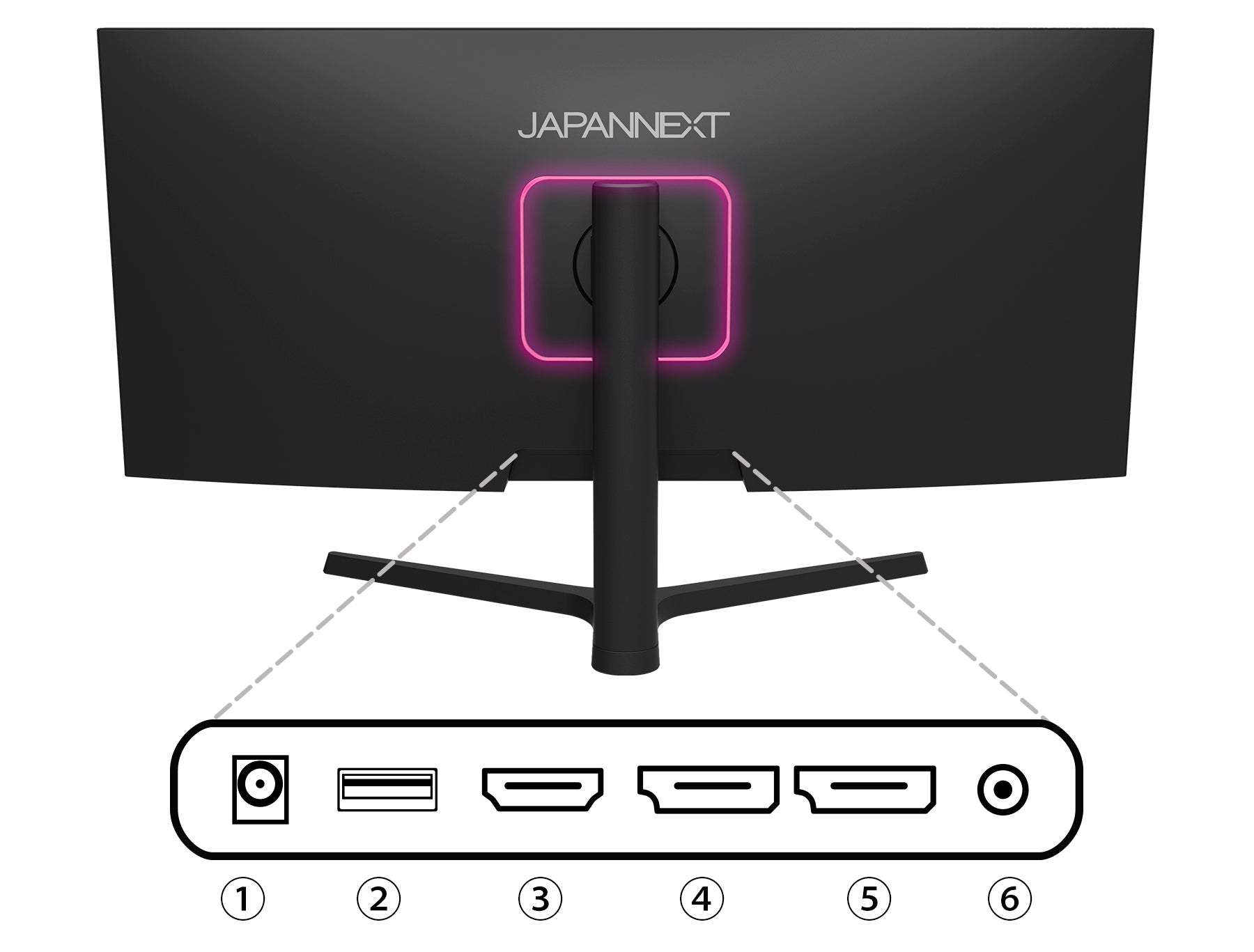インターフェイスは、HDMI 2.0 x1 (UWQHD:100Hz/WQHD:120Hz)、DisplayPort 1.4 x2 (UWQHD:165Hz)を搭載し、様々な機器との接続が可能です。