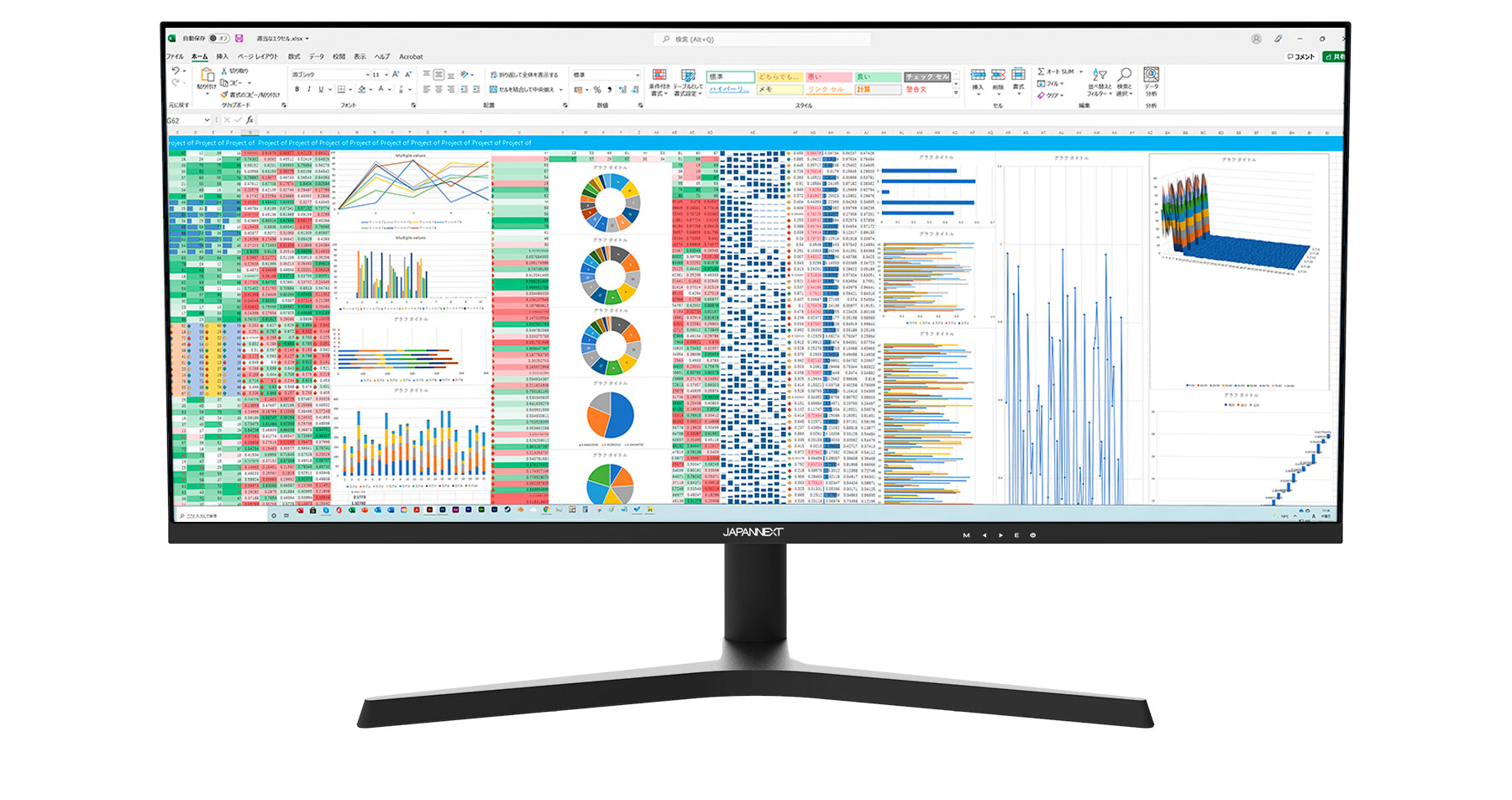3440×1440ドット対応の圧倒的な水平解像度を誇り、広域表示に対応することで作業効率を大幅に向上できます。 大型グラフィックスを扱うDTPやCADソフトなどの作業パレットを配置したり、 複数ドキュメントを扱うオフィスワークや、WEBページの同時表示やフルHD動画を楽しみながら、 その他のアプリケーションを同時に表示することで様々な作業をよりよくサポートします。
