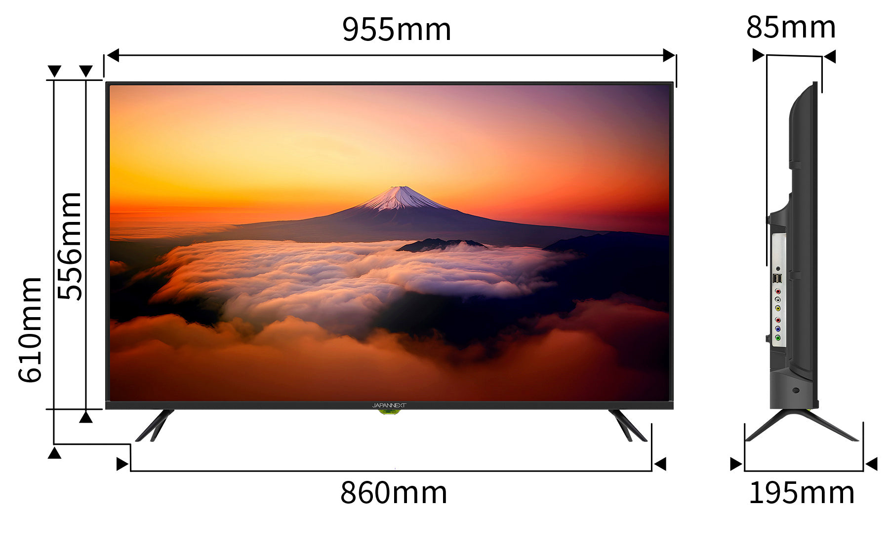 インターフェイスはHDMI1.4端子を3つとコンポーネント入力、音声・ビデオ入力端子、さらにUSBポートを2つ搭載、USBポートではパソコンや映像機器がなくても、USBに保存した画像や映像を表示することができ、デジタルサイネージとしてもご利用頂けます。*USB内のコンテンツ再生にはリモコンでの操作が必要です。自動再生機能はありません。
