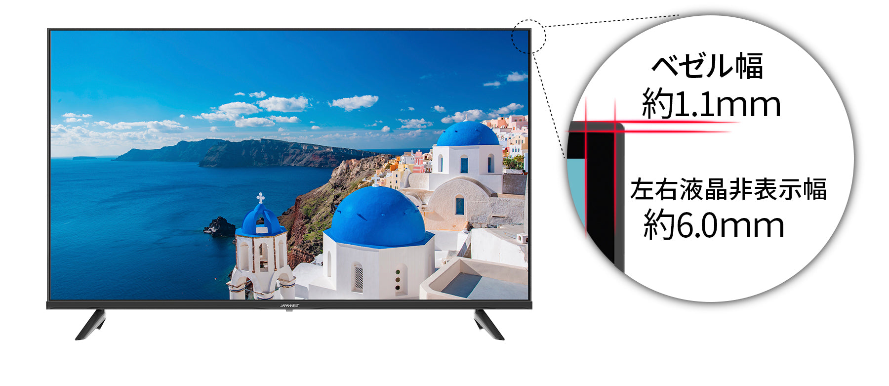 大型ながらベゼル幅はわずか1.1mm 液晶非表示幅は6.0mm。
