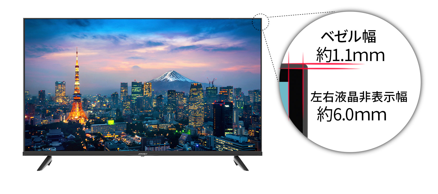 大型ながらベゼル幅はわずか1.1mm 液晶非表示幅は6.0mm。