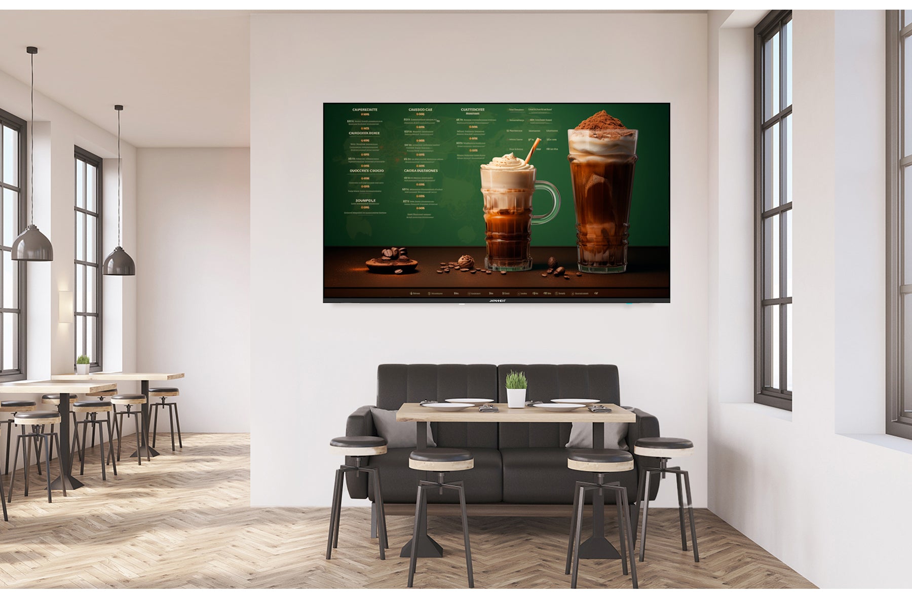 インターフェイスはHDMI1.4 x1 (60Hz/ARC)、HDMI1.4 x2 (60Hz)を搭載。パソコンのみならず、ブルーレイディスクプレーヤー、家庭用ゲーム機、デジタルビデオカメラなどを1本のケーブルで接続できます。 さらに、USBポートを搭載していますので、デジタルサイネージとしてもご利用できます(屋内使用のみ)。パソコンなどがなくても、USBメモリーを差すだけで、簡単に画像や動画を表示できます。※コンテンツの再生にはリモコンでの操作が必要です。自動再生機能には対応しておりません。
