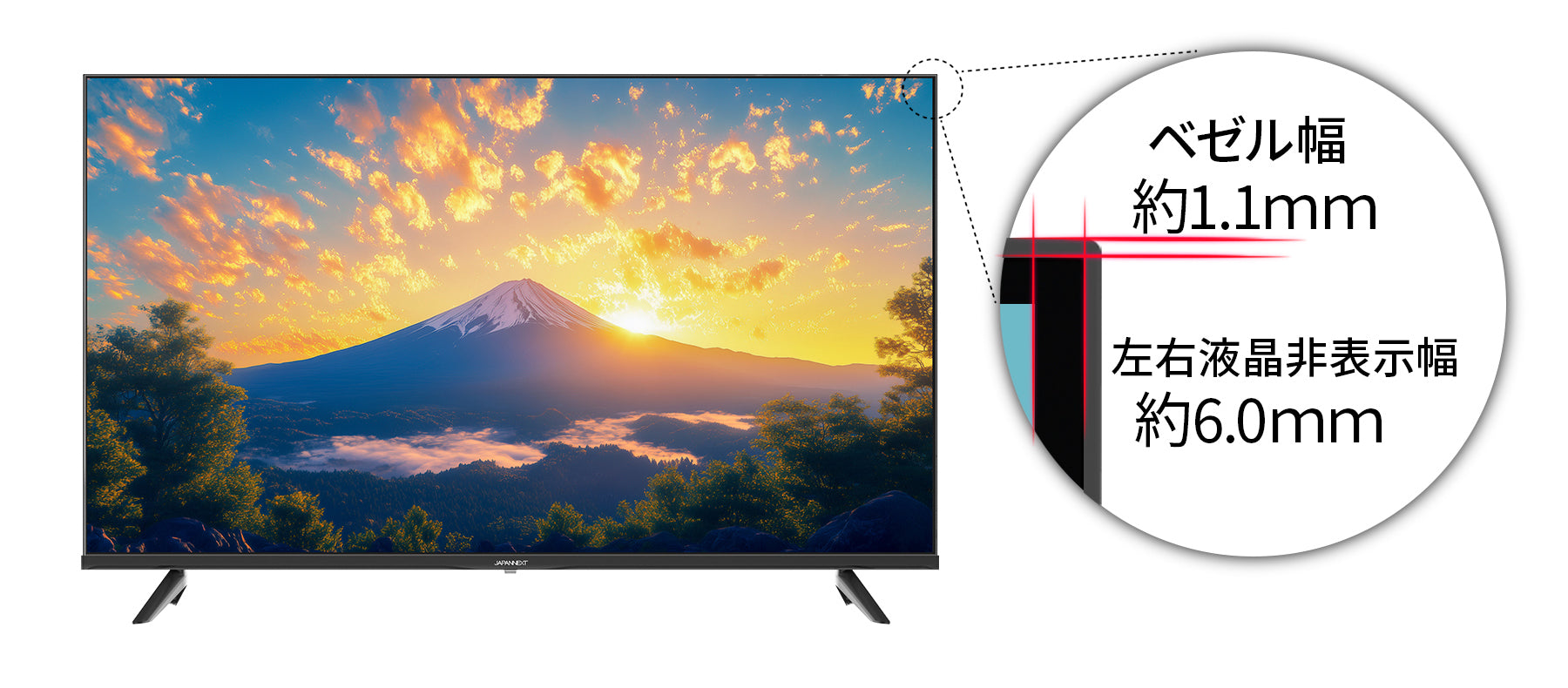 大型ながらベゼル幅はわずか1.1mm 液晶非表示幅は6.0mm。