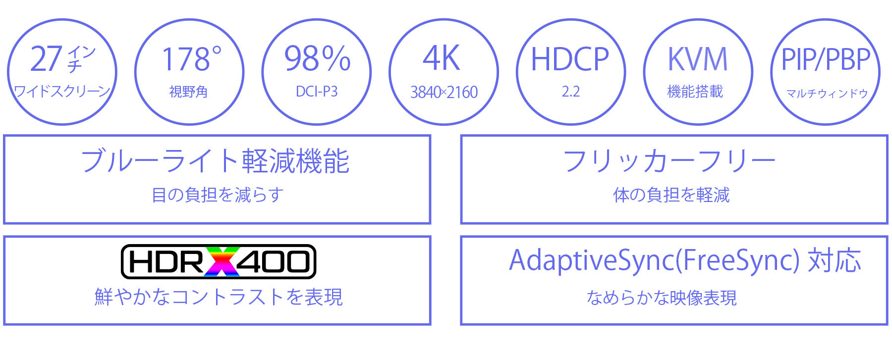 27インチのIPSパネルを搭載し、4K(3840x2160)解像度に対応した液晶モニターです。