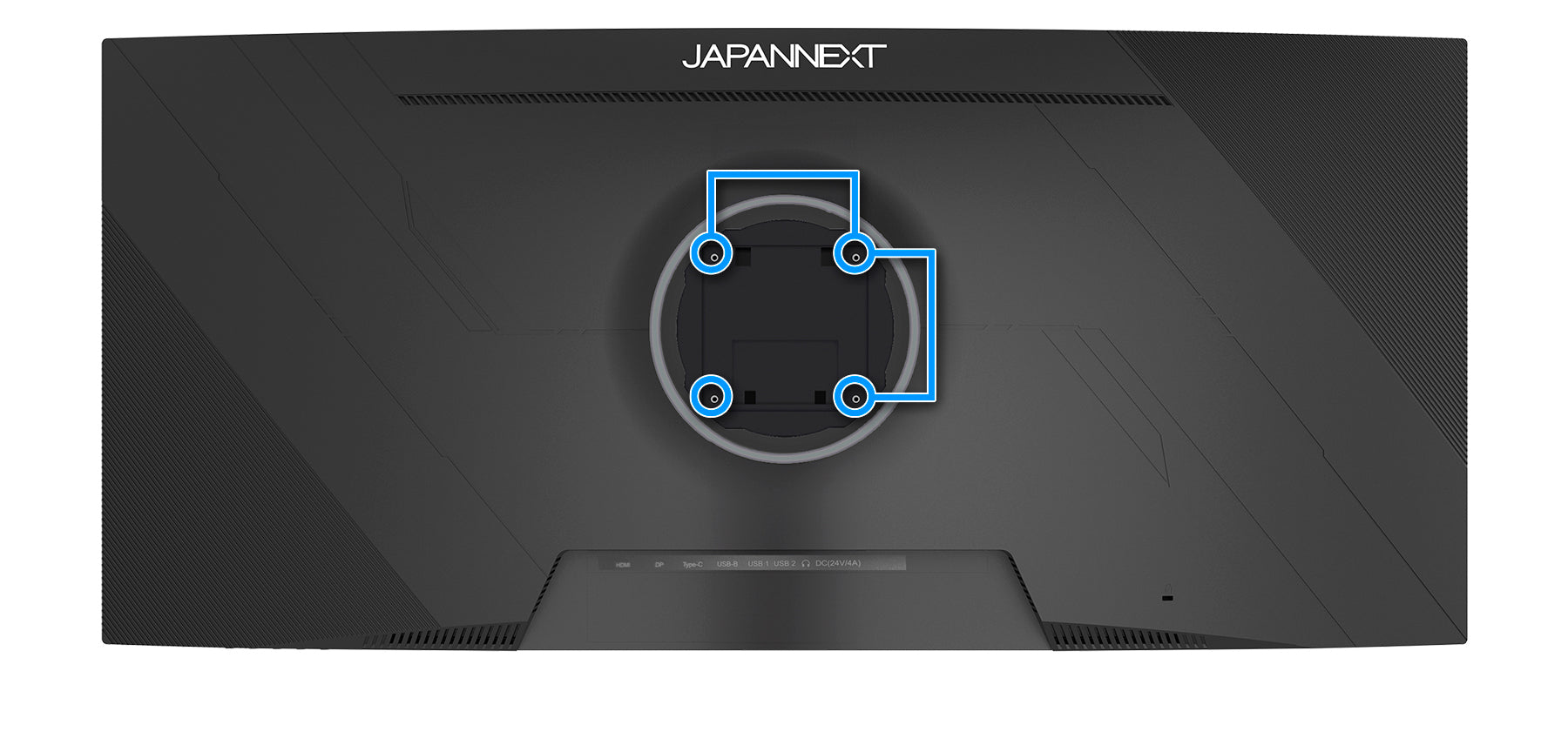 100x100mmのVESAマウントに対応しますので、別売りのモニターアームなどに使用が可能です。