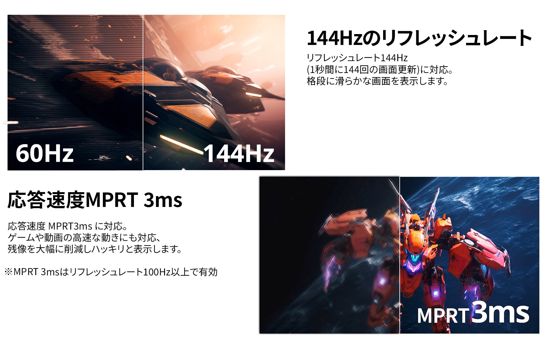 AdaptiveSync(FreeSync)テクノロジーはゲームプレイにおいて重要なフレームを安定させて、 どんなフレームレートでもなめらかなアーチファクトフリー性能を実現します。 ※AdaptiveSync(FreeSync)からG-Syncへの互換性があります。 (一部の機種を除きます。)