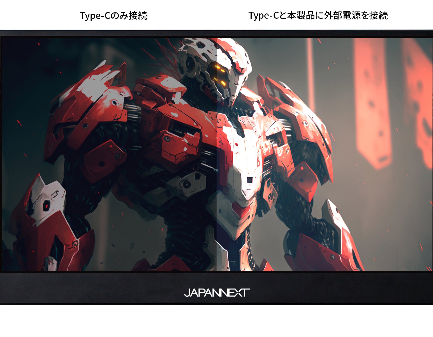 Type-C接続のみの場合、接続機種の給電能力に合わせて明るさを抑えて表示します。