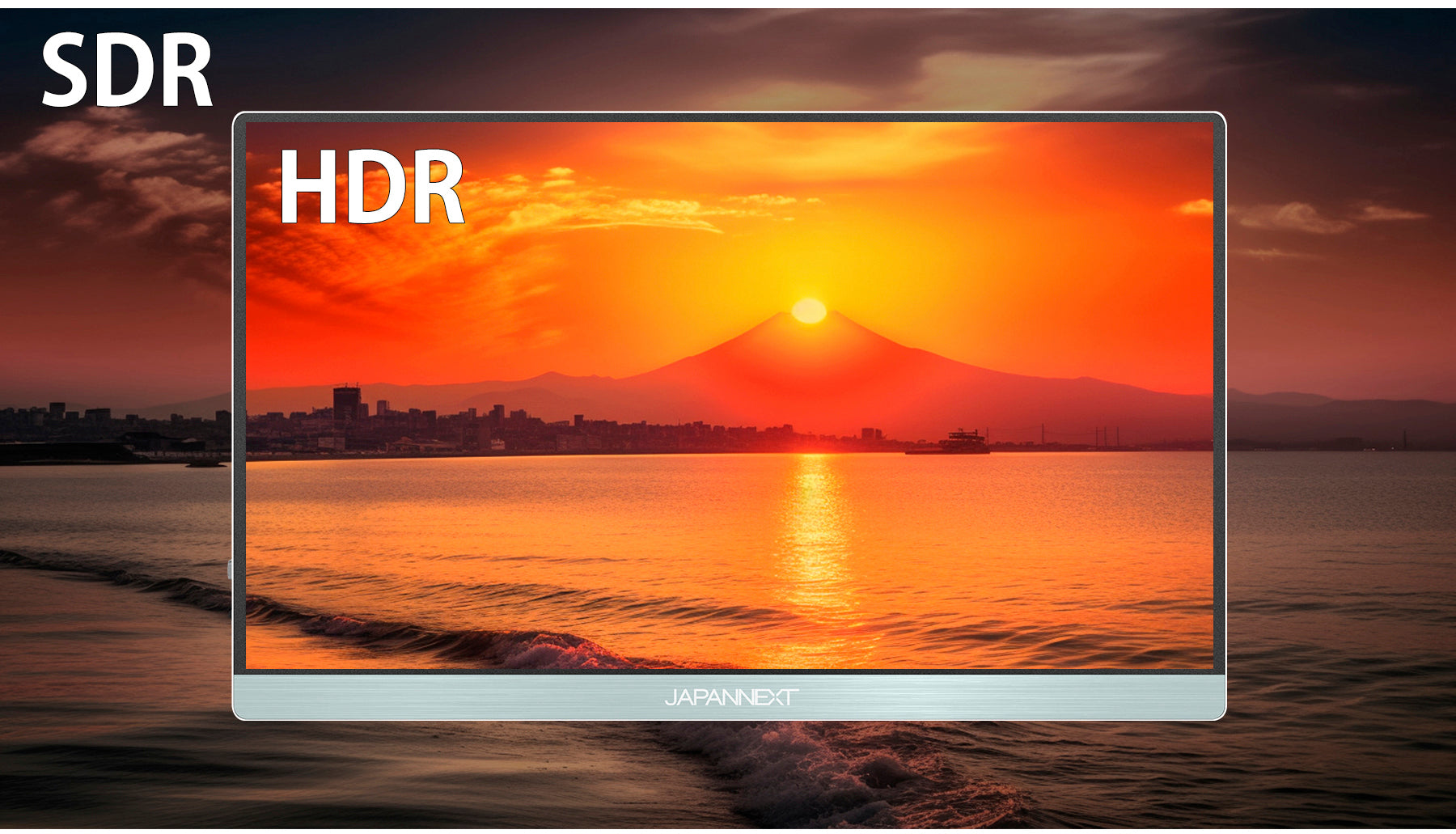 HDR(ハイダイナミックレンジ)対応モニターは、従来のSDR(スタンダードダイナミックレンジ)より明るい部分も暗い部分もくっきり表現しリアルに迫った深みのある映像を演出します。HDR対応のブルーレイディスクやビデオ・オン・デマンド、ゲームなどの表示が可能。現実に近い究極の映像をお楽しみください