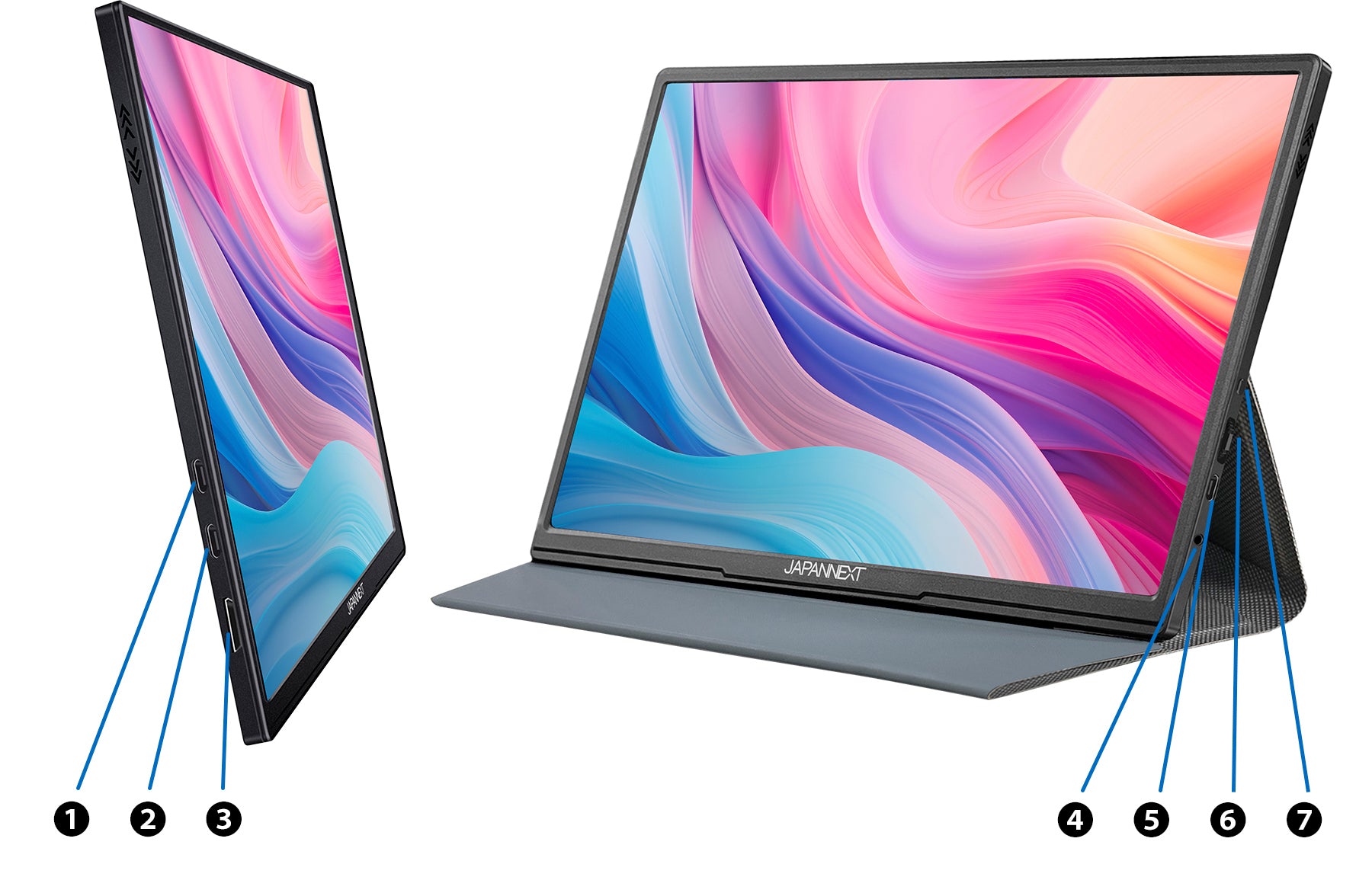 入力端子としてハイブリッド対応(モニターへの電源と映像を1本で送信)のUSB Type-Cを2つとminiHDMIを1つ、さらにmicroUSBを1つ装備します。*miniHDMI使用時にはUSB Type-C端子から電源供給が必要になります。