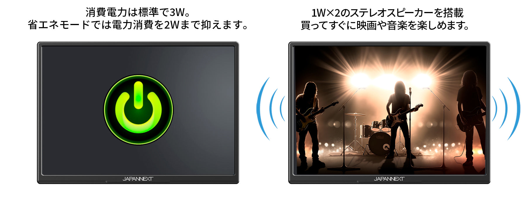 1Wx2のスピーカーを内蔵していますので動画、ゲームなどをお楽しみいただけます。