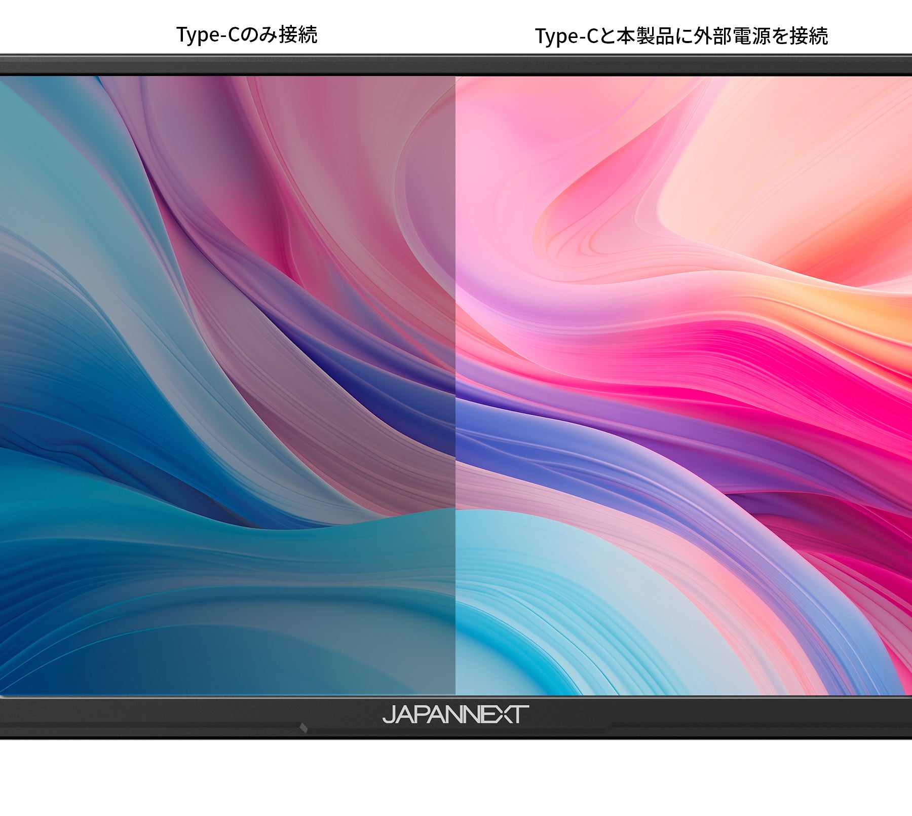 USB-C接続のみの場合、接続機種の給電能力に合わせて明るさを抑えて表示します。