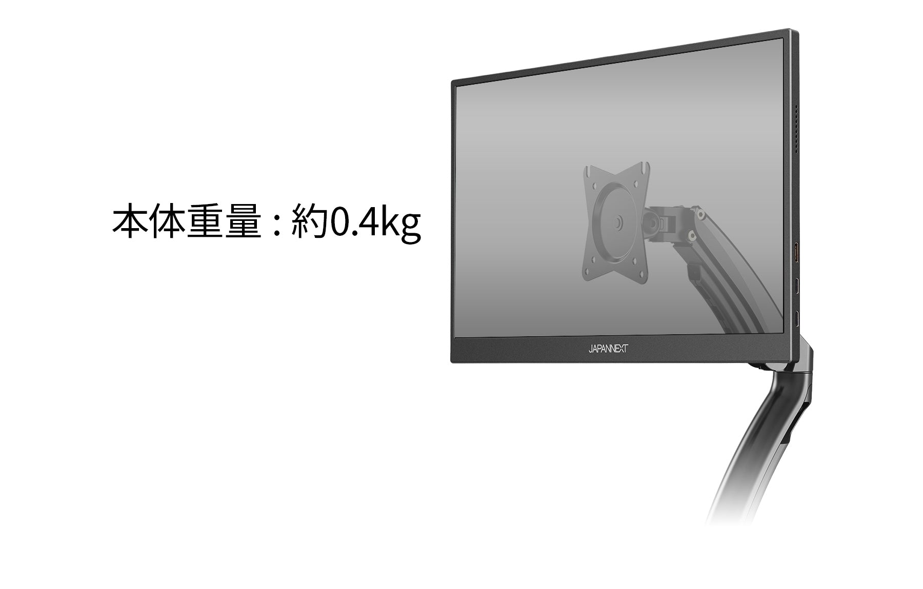 75x75mmのVESA規格に対応、モニターアームなどにも使用が可能です。