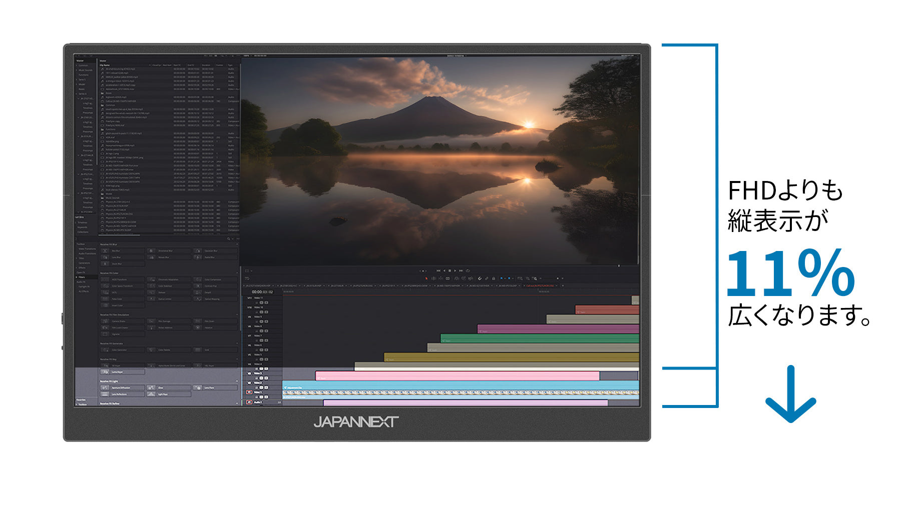 Full HD (1920×1080)よりも縦表示が11%広いので作業効率が向上します。
