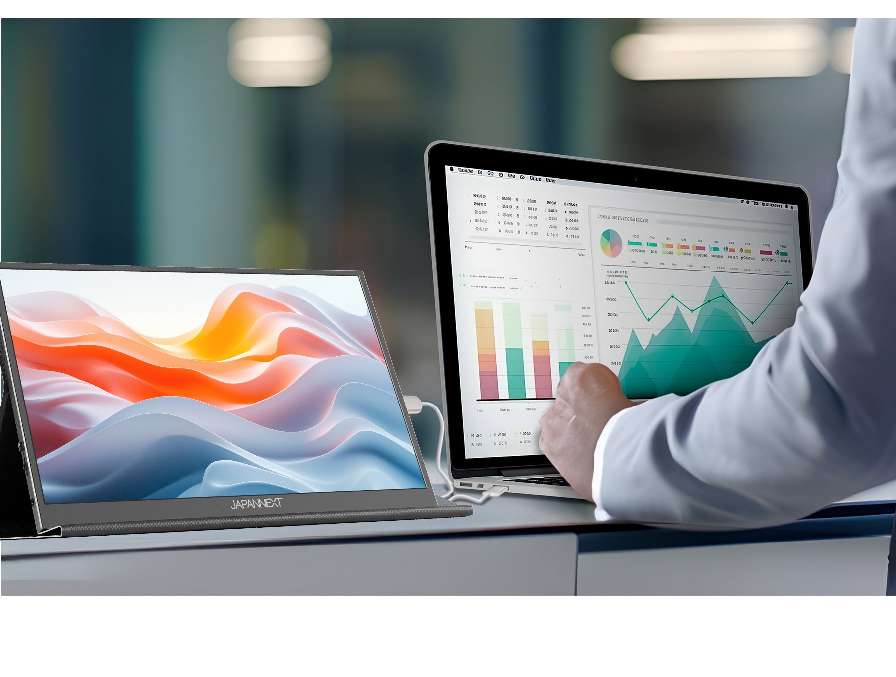 12.2インチでIPSパネル搭載を搭載し、WUXGA(1920x1200)解像度に対応したモバイルモニターです。ワーケーション中や外出先、ご自宅のリビングなど、大きなディスプレイを設置できないさまざまな環境においても、手軽にマルチディスプレイ環境を実現いただけます。