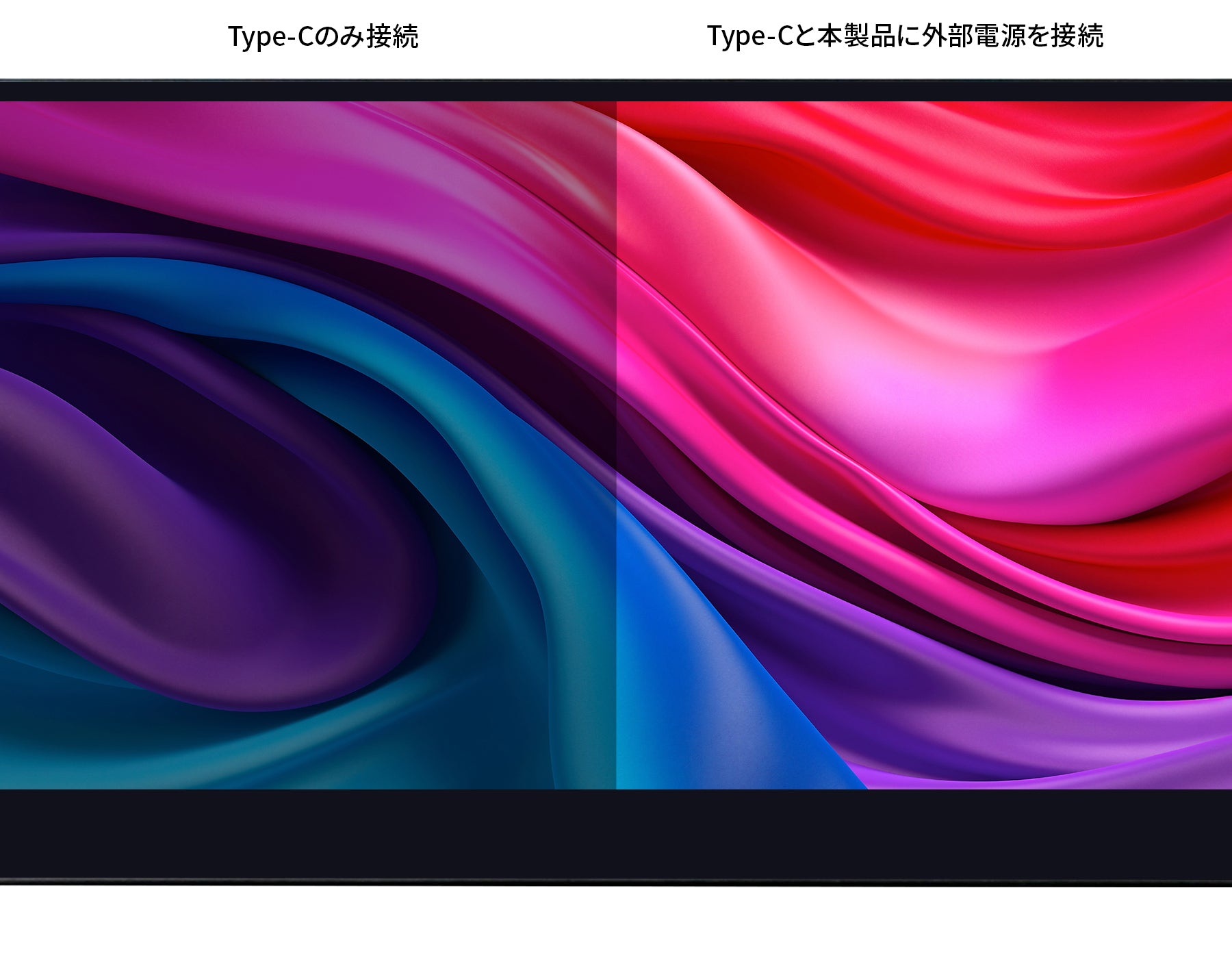 Type-C接続のみの場合、接続機種の給電能力に合わせて明るさを抑えて表示します。