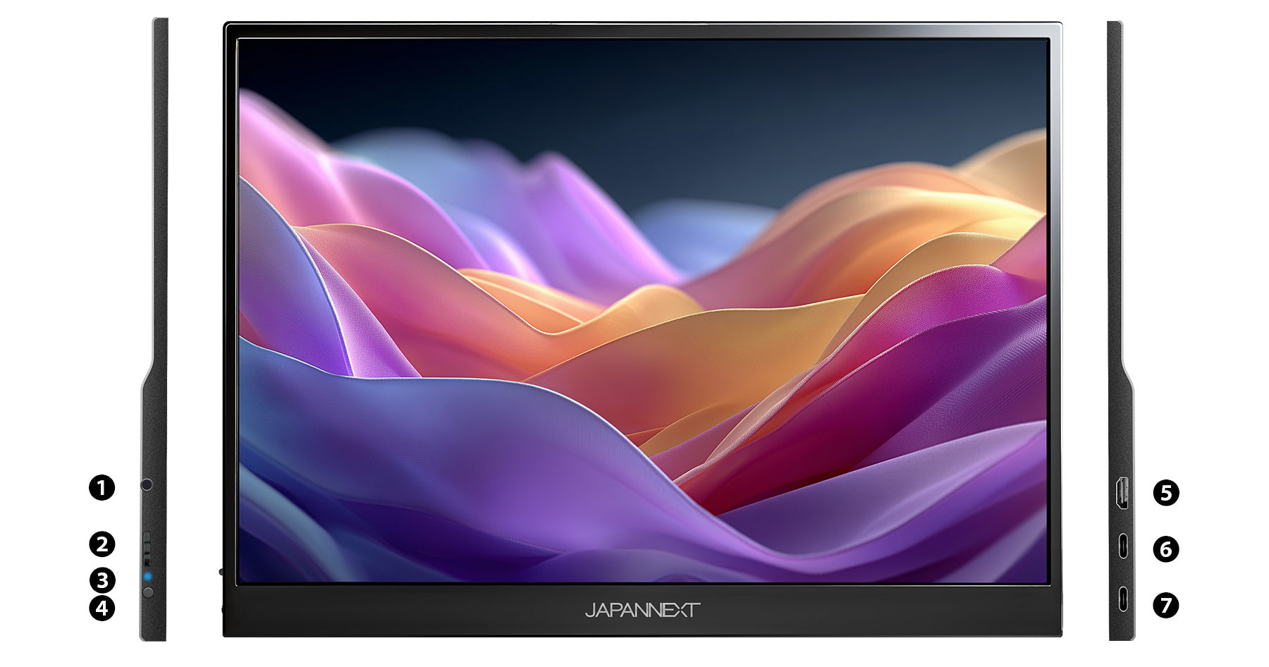入力端子としてハイブリッド対応(モニターへの電源と映像を1本で送信)のUSB Type-Cを1つと電源供給用のUSB Type-Cを1つ、さらにminiHDMIを1つ装備します。*miniHDMI使用時にはUSB Type-C端子から電源供給が必要になります。