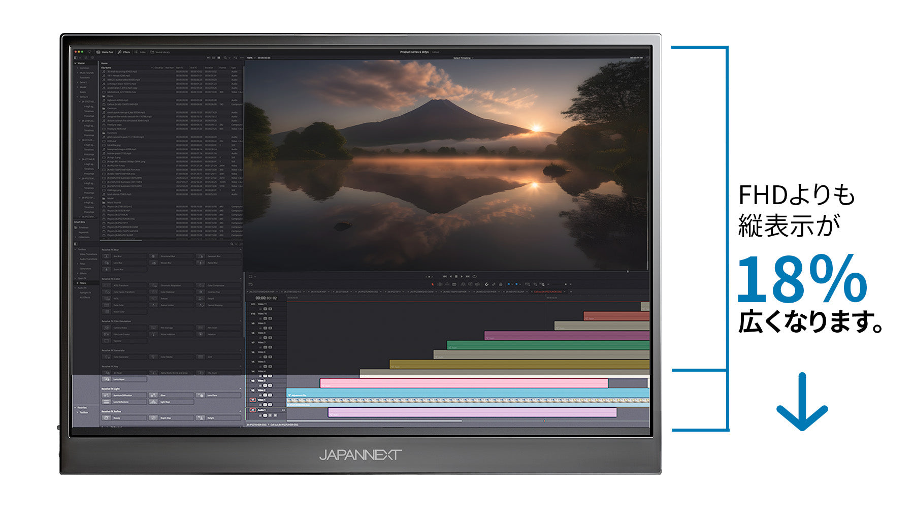 Full HD (1920×1080)よりも縦表示が200px広いので作業効率が向上します。