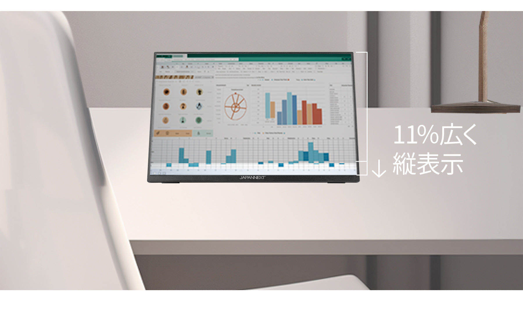 通常のアスペクト比16:9よりも縦表示部分が11%広くなるので作業効率が上がります。