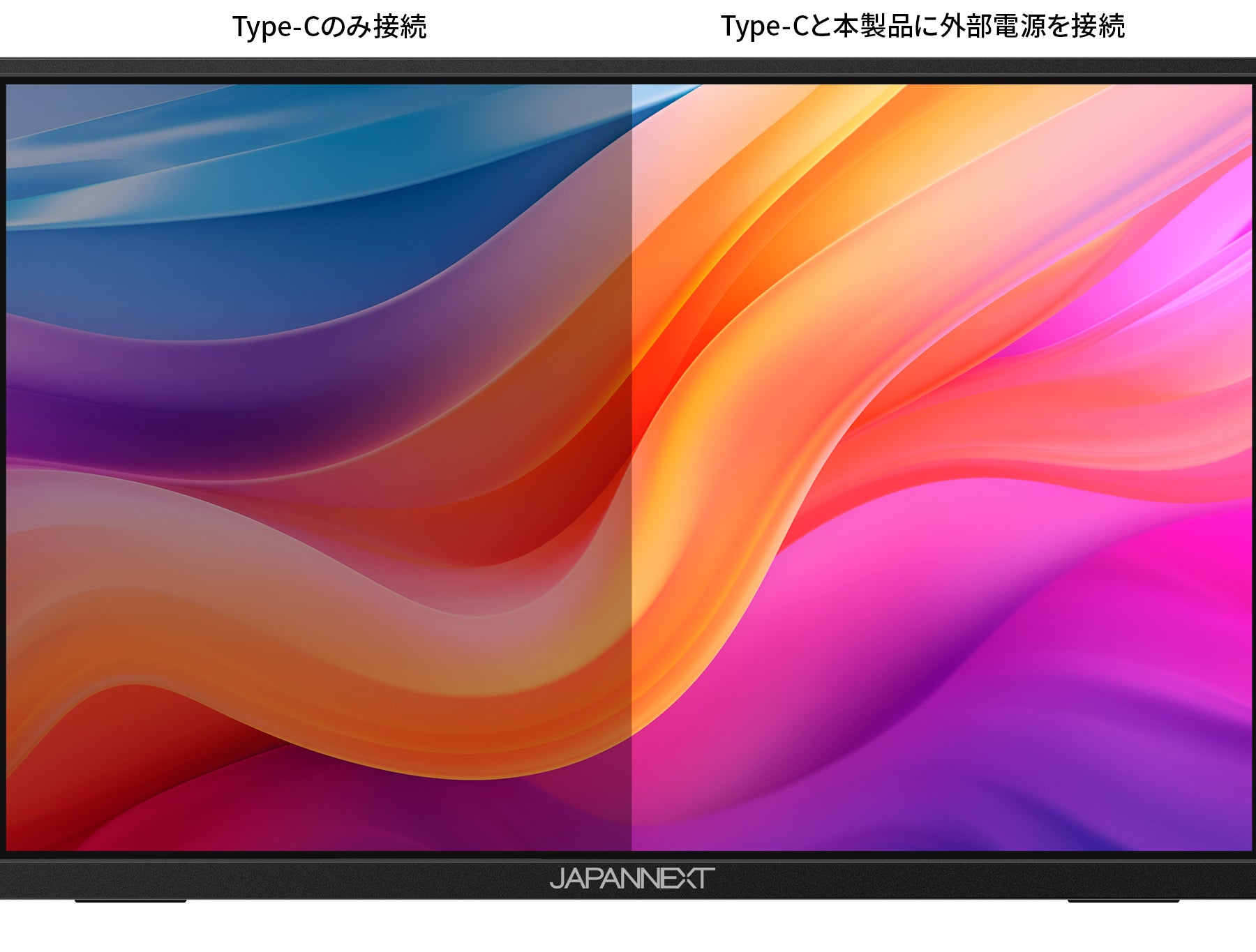 Type-C接続のみの場合、接続機種の給電能力に合わせて明るさを抑えて表示します。