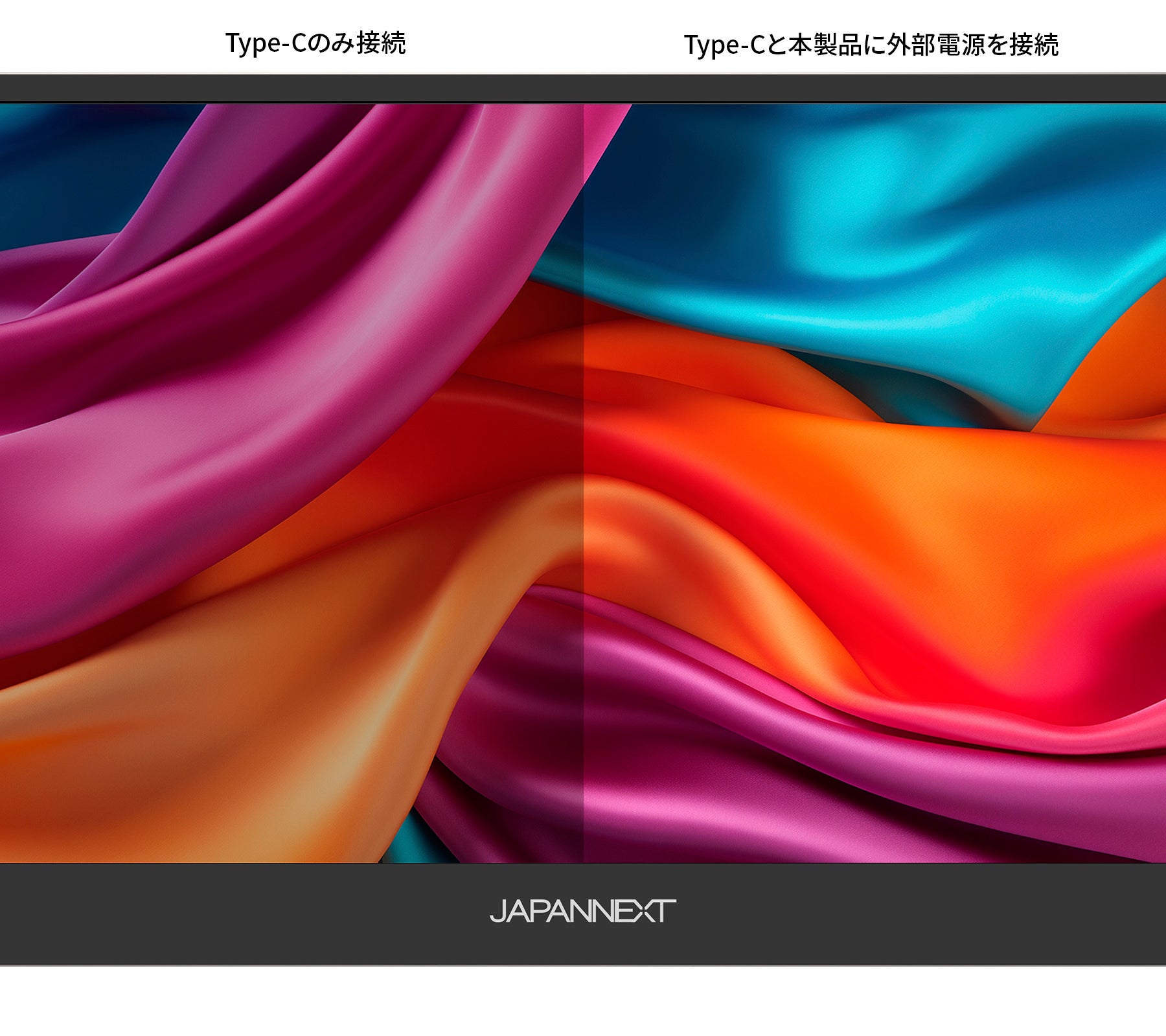 Type-C接続のみの場合、接続機種の給電能力に合わせて明るさを抑えて表示します。