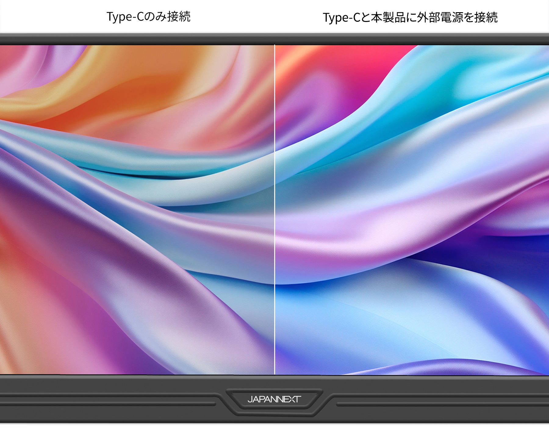 USB-C接続のみの場合、接続機種の給電能力に合わせて明るさを抑えて表示します。