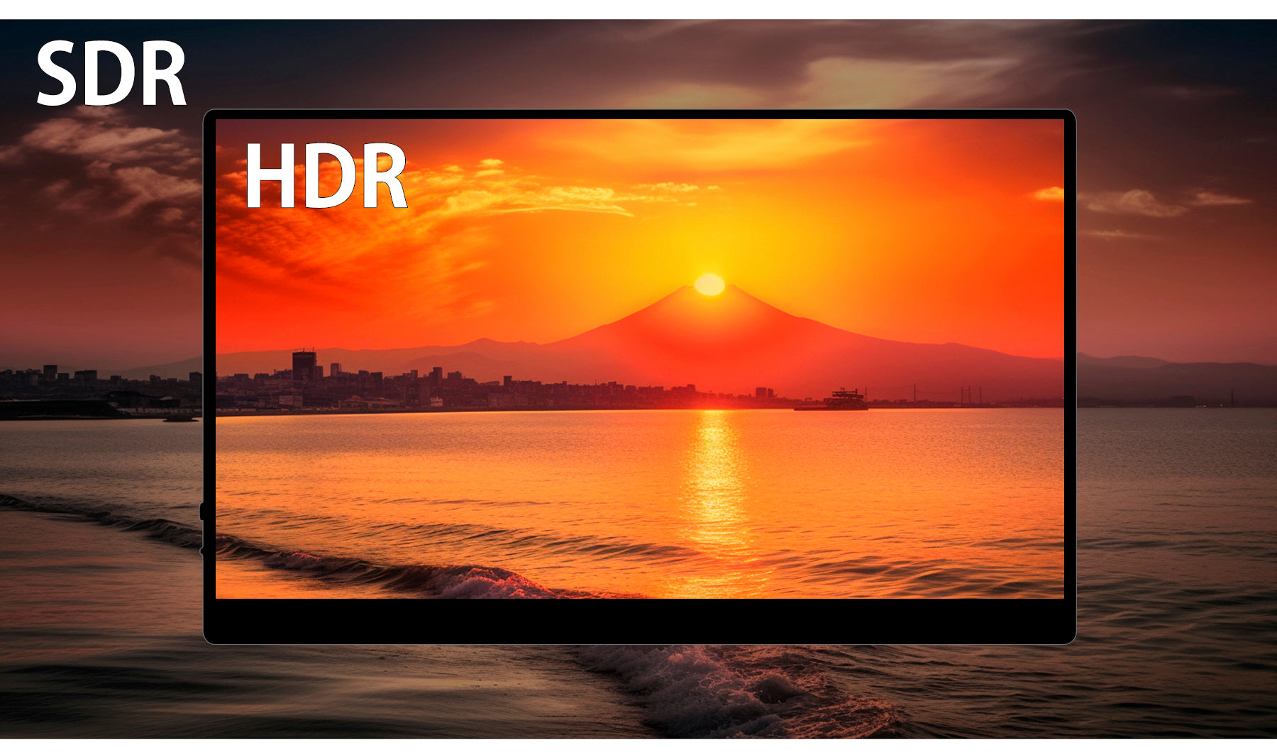 HDR(ハイダイナミックレンジ)対応モニターは、従来のSDR(スタンダードダイナミックレンジ)より明るい部分も暗い部分もくっきり表現しリアルに迫った深みのある映像を演出します。HDR対応のブルーレイディスクやビデオ・オン・デマンド、ゲームなどの表示が可能。現実に近い究極の映像をお楽しみください
