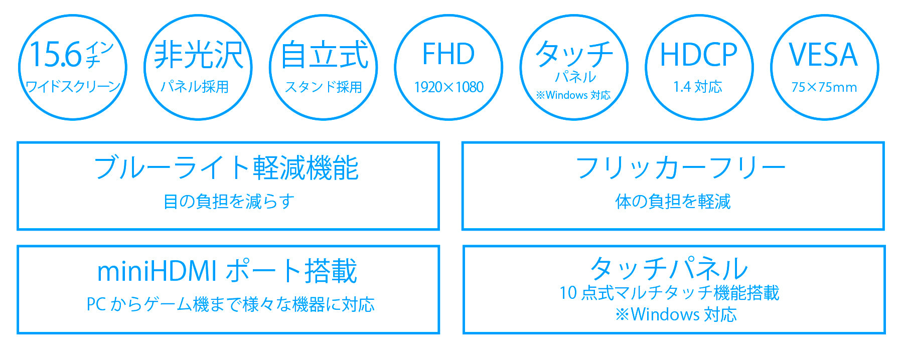 15.6インチのIPSパネルを搭載し、使いやすいフルHD(1920x1080)解像度に対応したモバイルモニターです。上下左右178度に対応した高画質IPSパネルを搭載し、コンテンツを色鮮やかに映し出します。