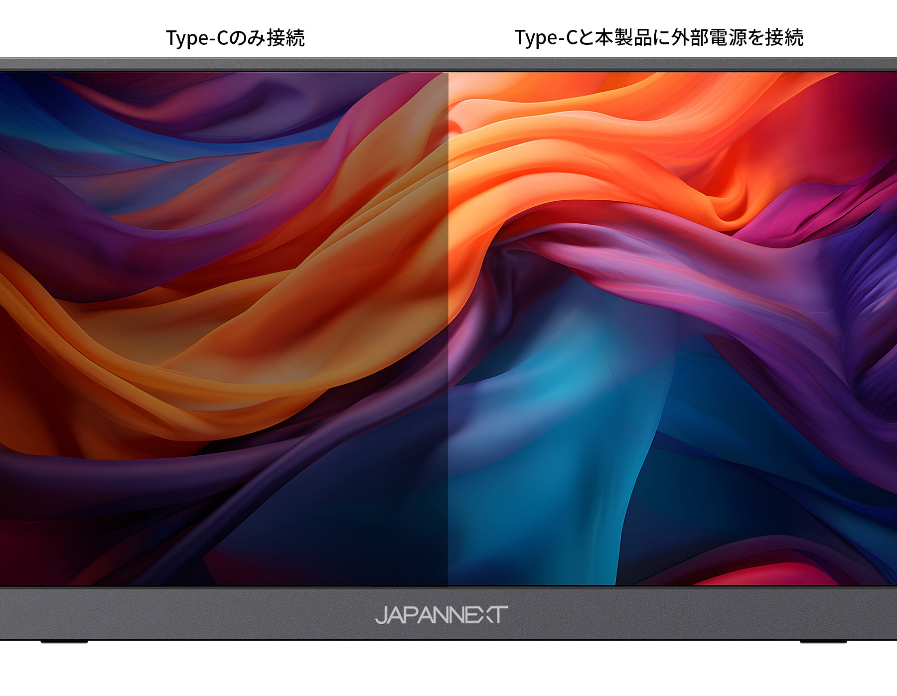 Type-C接続のみの場合、接続機種の給電能力に合わせて明るさを抑えて表示します。