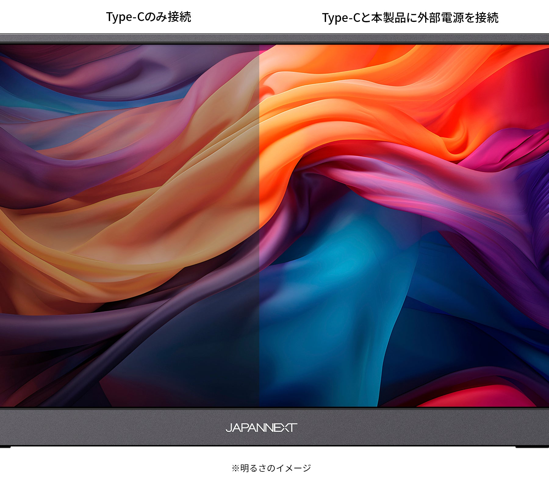 Type-C接続のみの場合、接続機種の給電能力に合わせて明るさを抑えて表示します。