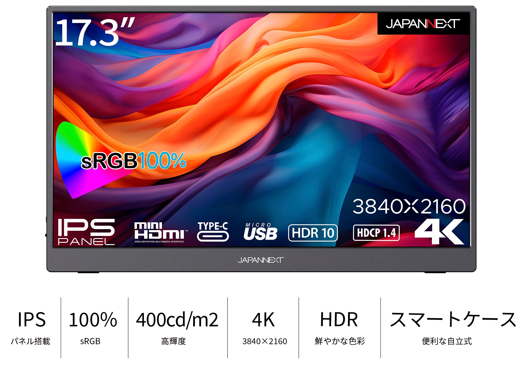 17.3インチ IPSパネル 4K モバイルモニター