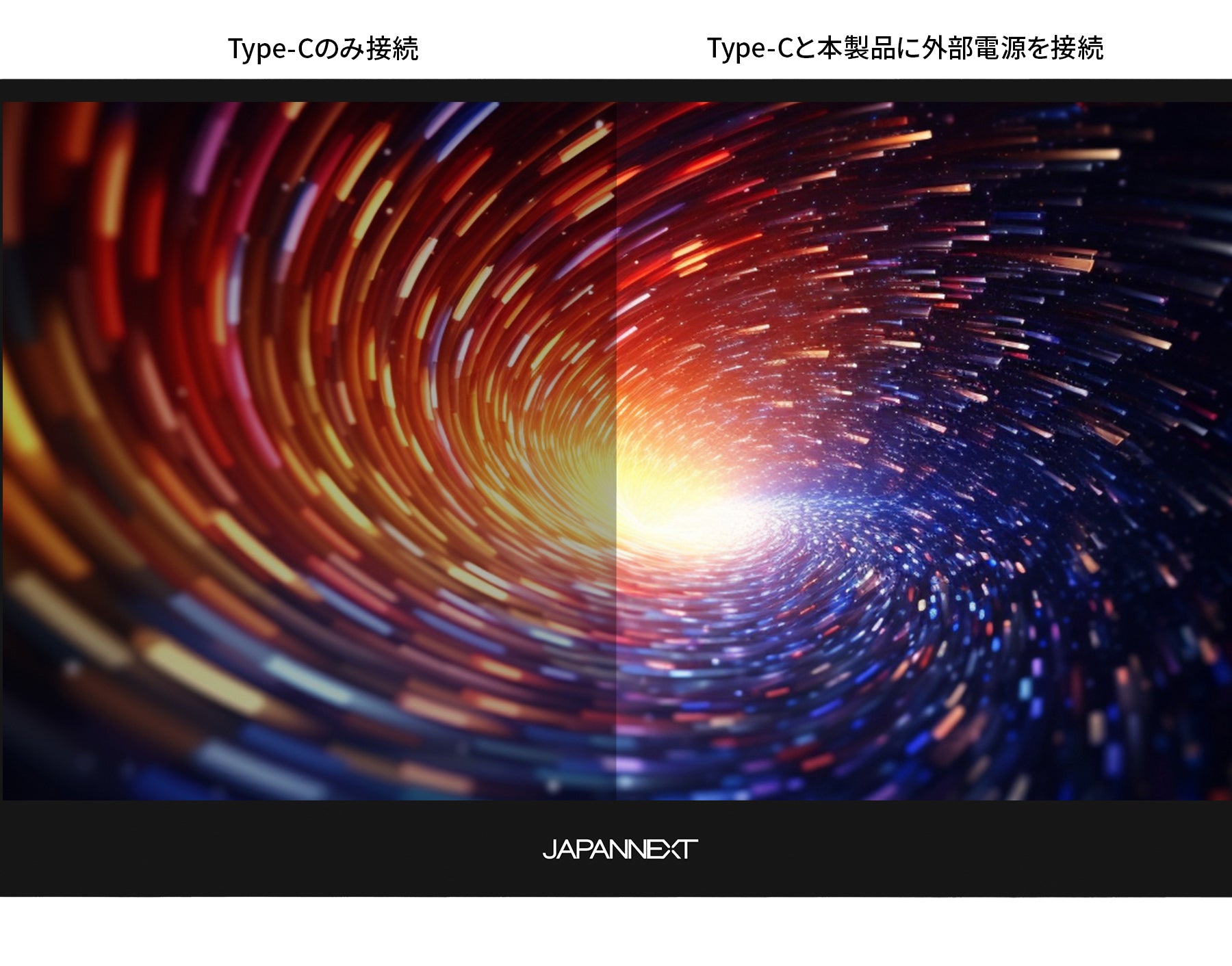 Type-C接続のみの場合、接続機種の給電能力に合わせて明るさを抑えて表示します。