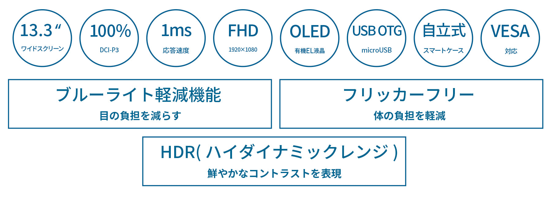 13.3” 有機EL(OLED)FHDモバイルモニター