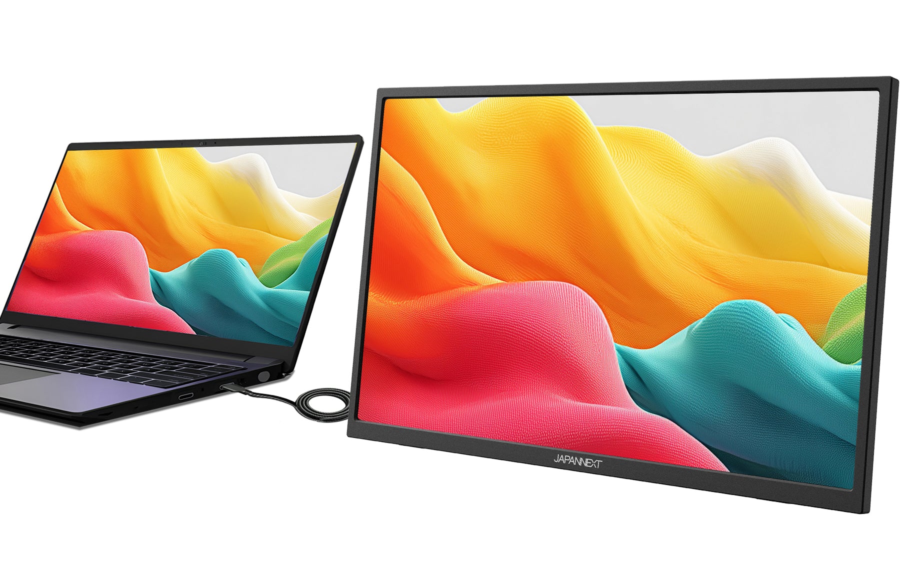 モニター背面にキックスタンドを搭載しているので自立して使用することができ、どこでもデュアルディプレイ環境の構築が可能です。また、携帯時に便利なJAPANNEXT特製キャリングケースを同梱。製品本体をホコリや傷から守り、持ち運びに最適です。