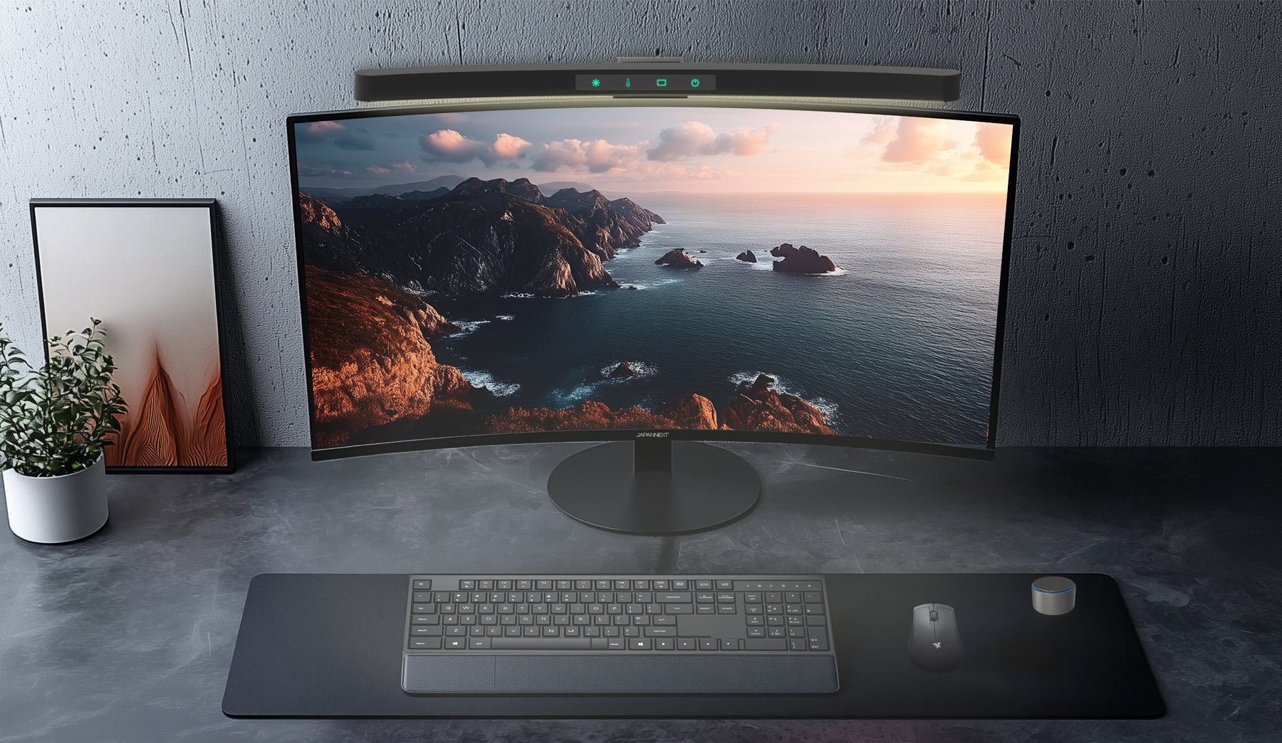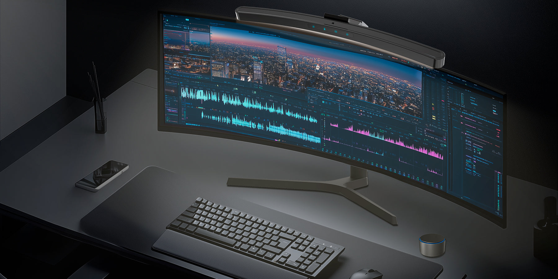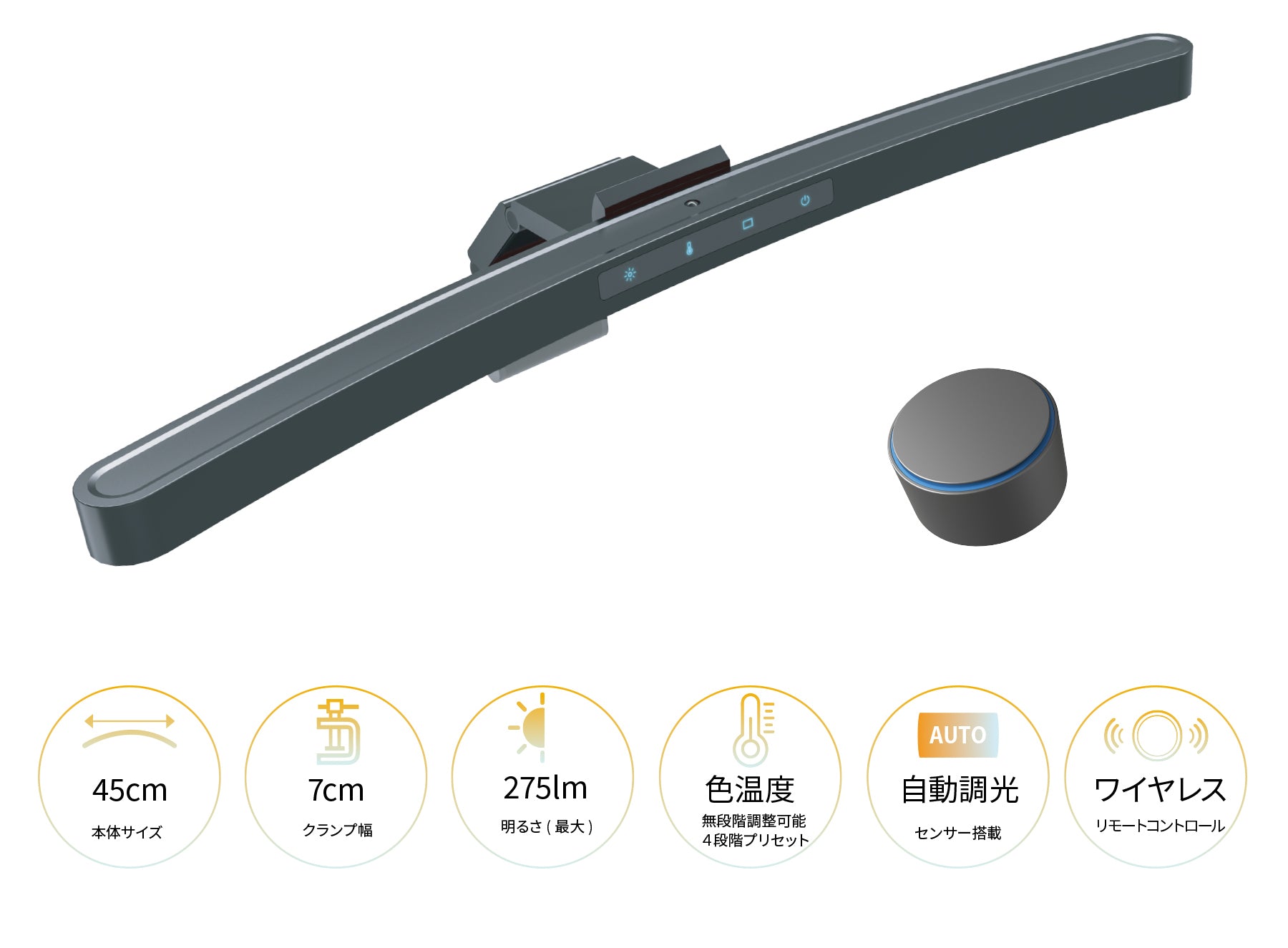 湾曲モニターに沿うアーチ形状を採用した湾曲モニターライトです。明るさは最大275lm。色温度は、無段階での微調整に加え、4種類のプリセットからも簡単に選択可能です。使う場所や時間帯に合わせて、すぐに最適な明るさに切り替えられます。