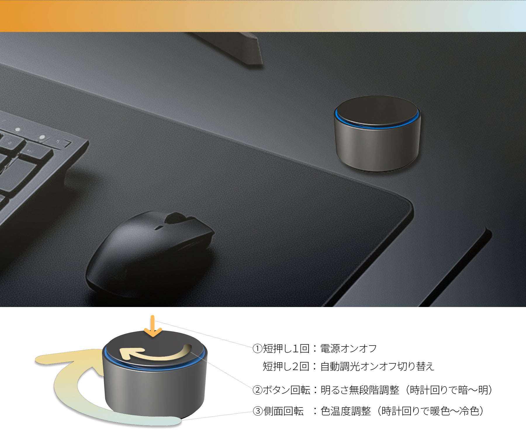ワイヤレスリモコンを同梱し、手元から明るさや色温度を簡単に操作できます。ケーブル不要のワイヤレス仕様で、デスク周りもすっきり保てます。