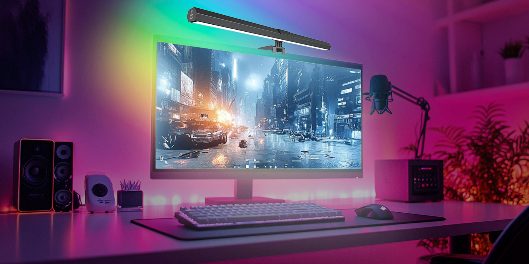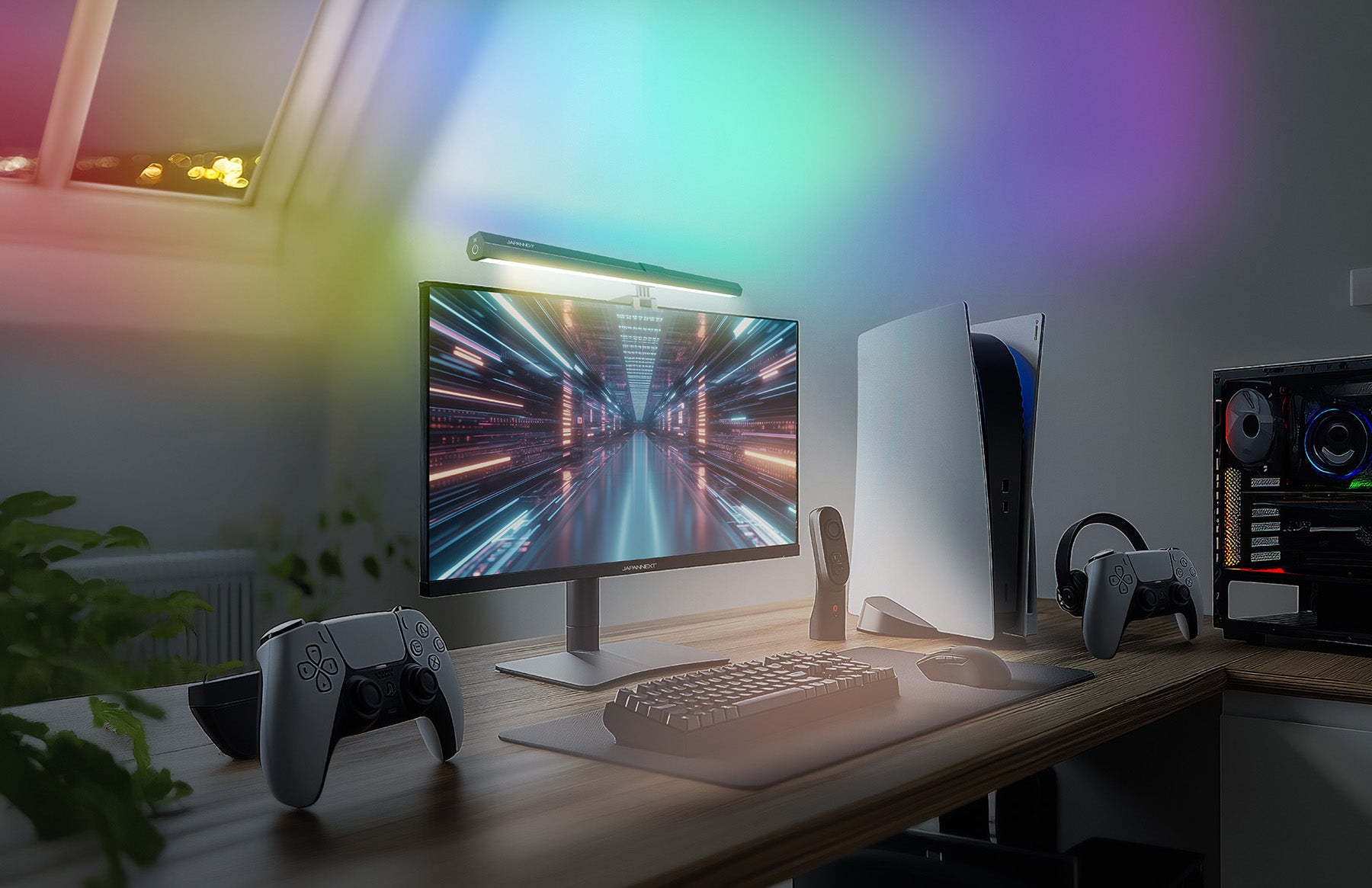 背面のRGBライティングがゲーミング環境を一層華やかに演出し、ゲームの世界への没入感を高めるゲーミングモニターライトです。明るさは最大180lm。色温度は、3種類のプリセットからも簡単に選択可能です。使う場所や時間帯に合わせて、すぐに最適な明るさに切り替えられます。