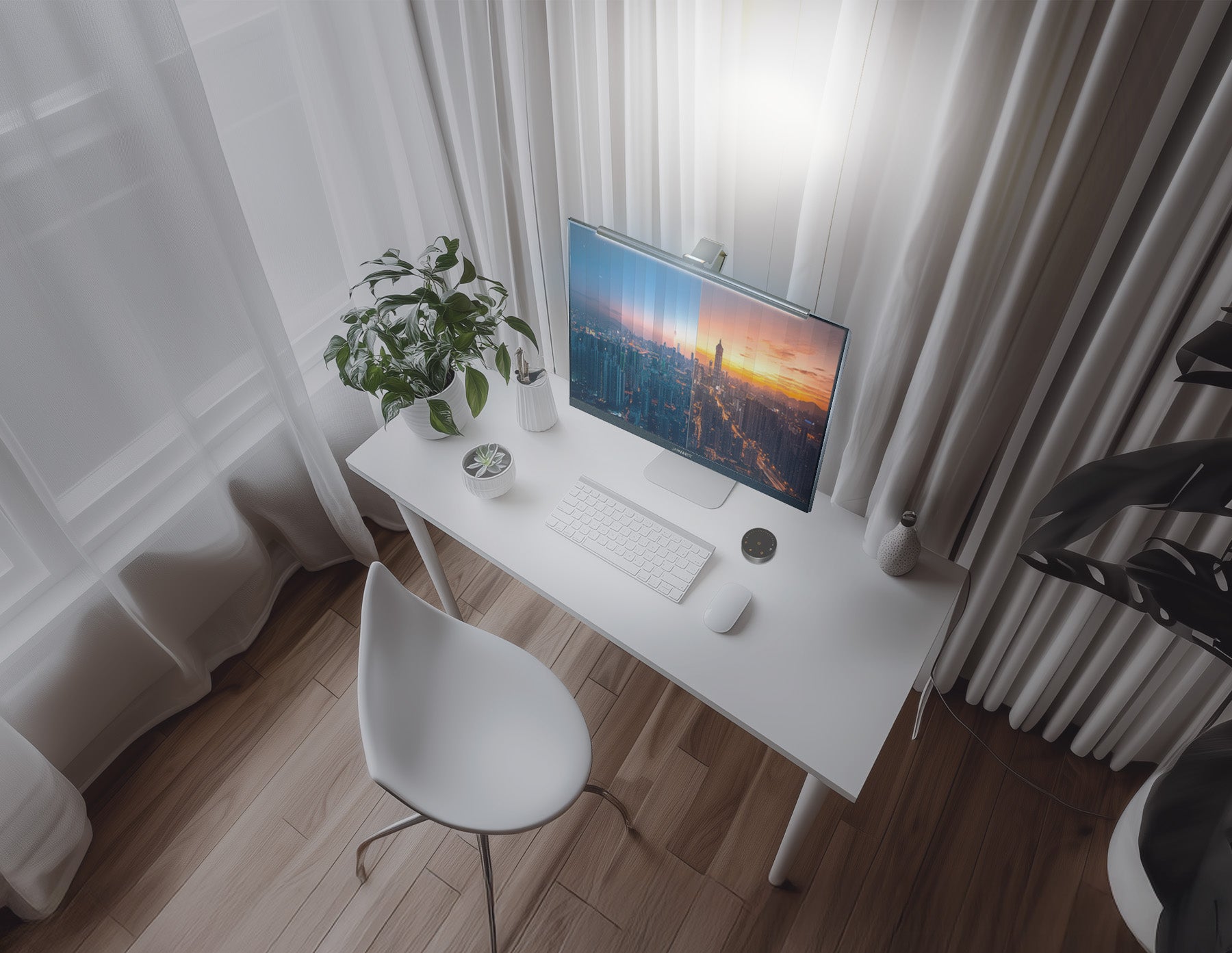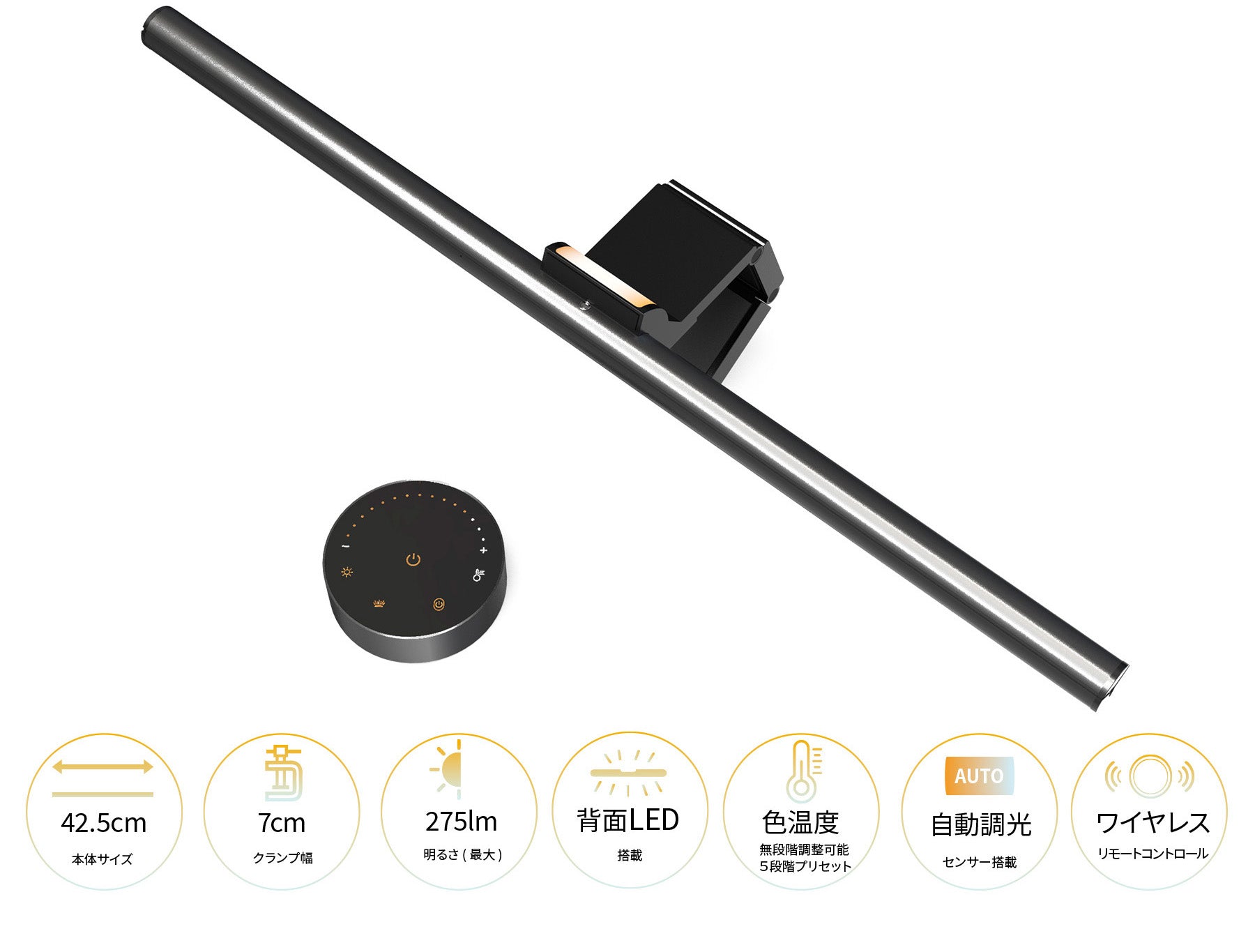 ディスプレイ上部に取り付ける省スペース設計のモニターライトです。デスクのスペースを確保しながら、手元をしっかりと照らし、作業効率を高めます。反射や映り込みを抑えることで目の負担を軽減し、長時間のパソコン作業や読書、学習も快適にサポートします。