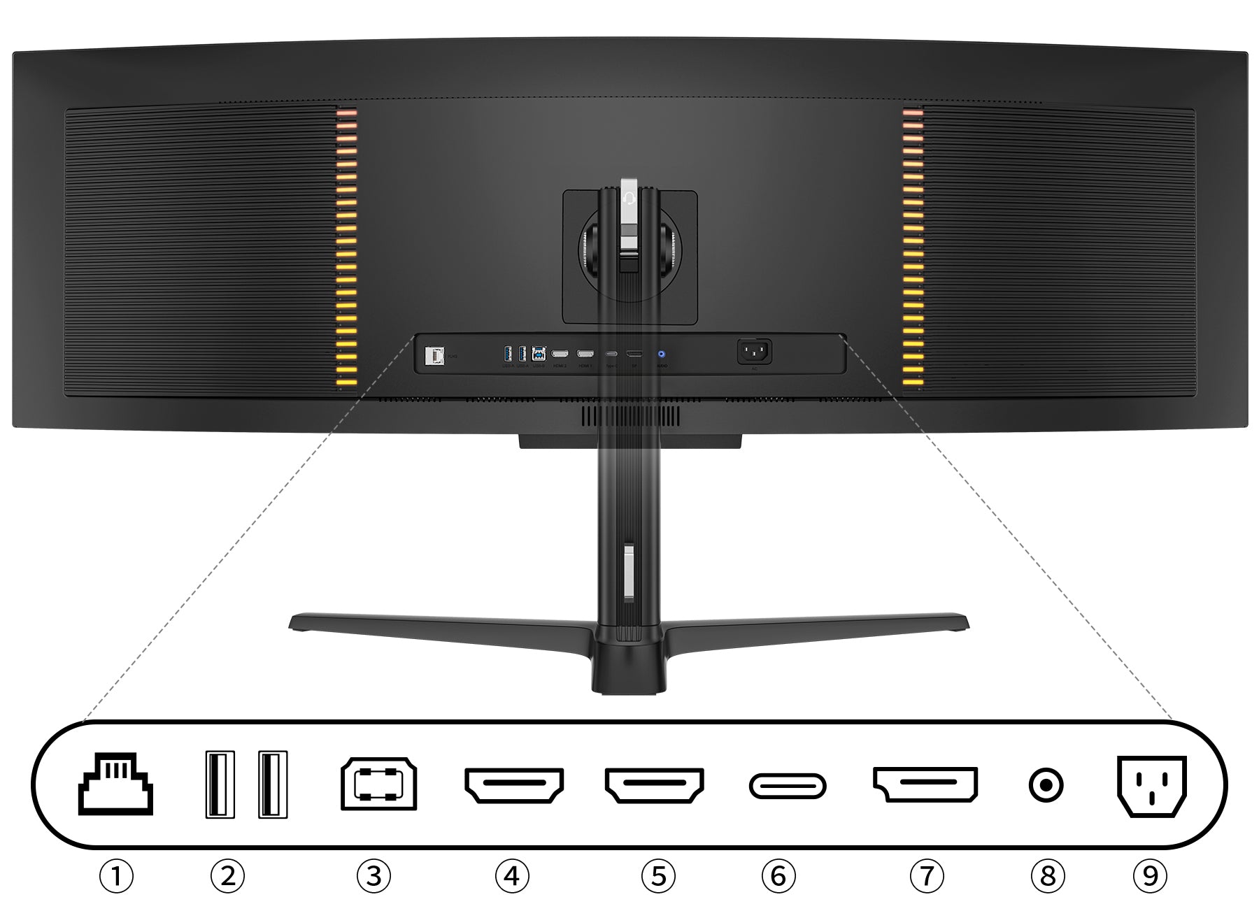 ⑥USB Type-C:3.1 (5120x1440)@144Hz /同時給電最大90W)
