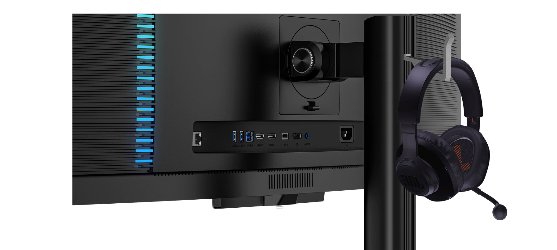 インターフェイスはHDMI 2.1 x2 (144Hz)、DisplayPort1.4 x1(144Hz)、USB Type-C (144Hz/最大90W給電)を装備し、様々な機器との接続が可能です。USB-C(最大90W給電)は、対応のPCであればUSB-Cケーブル1本でモニターへの映像出力とノートPCへの給電が可能。ケーブル1本でスッキリ接続出来るだけでなく、テレワーク、出社併用の場合などノートPCのACアダプターを持ち運ぶ必要が無くなります。